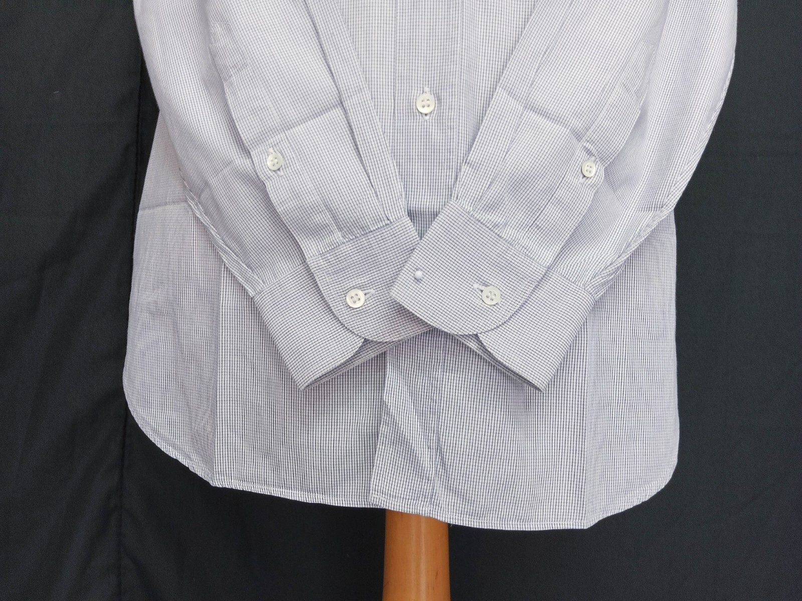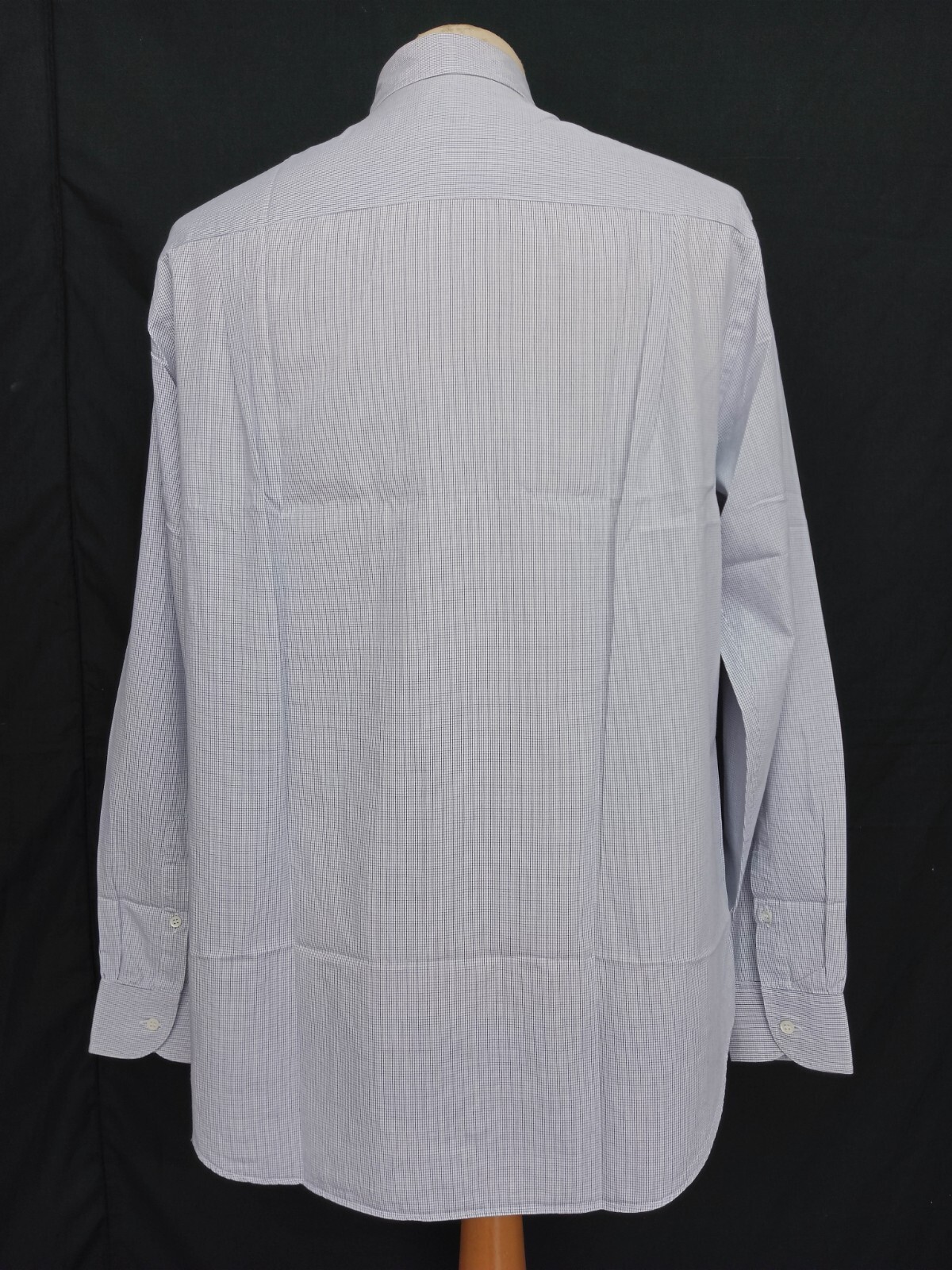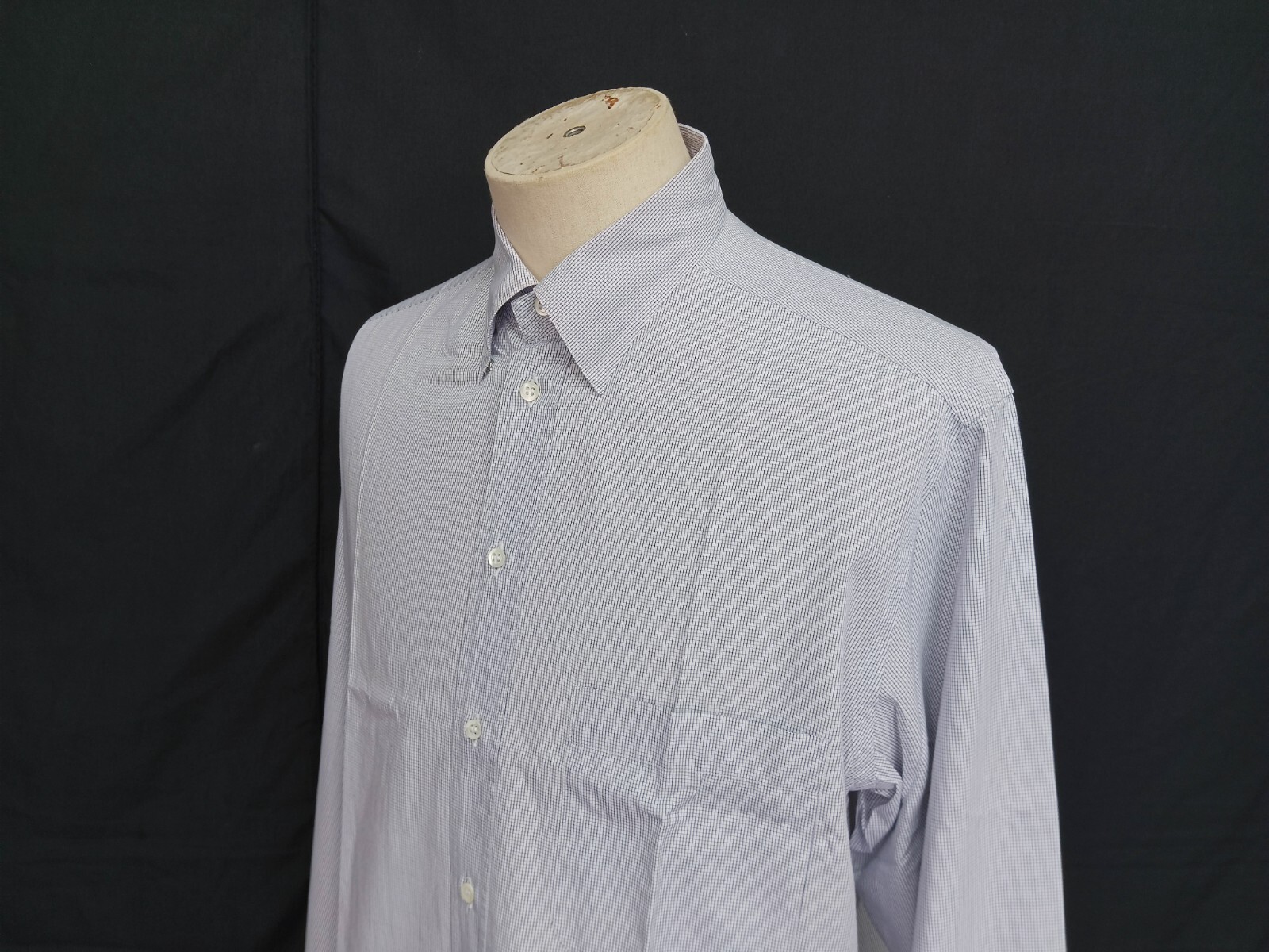 Luxury Armani Collezioni hidden snap button-down white & black micro check men's dress shirt long sleeve with buttons front authenticity guaranteed. Check out awesome designer shirt. The shirt has hidden snap button-down collar, single chest pocket on left with 8 mother of pearl buttons closure on front. The color is white, black with micro check pattern. Fabric is 100% cotton. The item is pre-owned still in excellent condition no holes, tears, stains. It has been laundered clean and fresh ready to wear. Don't miss out luxury designer shirt.