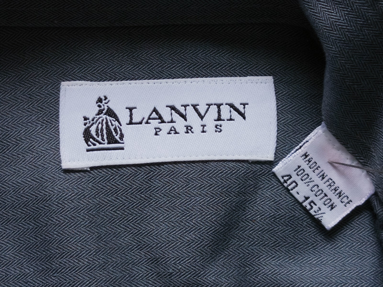 Luxury LANVIN Paris gray herringbone men's dress shirt long sleeve with buttons front authenticity guaranteed. The shirt has point collar, rounded cuff, single chest pocket on left with 7 mother of pearl buttons closure on front. The color is gray with herringbone pattern. Fabric is 100% cotton. The shirt is pre-owned still in good condition there is a stain under collar of the shirt. Please see the photos. It has already laundered clean and fresh ready to wear. Don't miss out cool and awesome designer shirt.