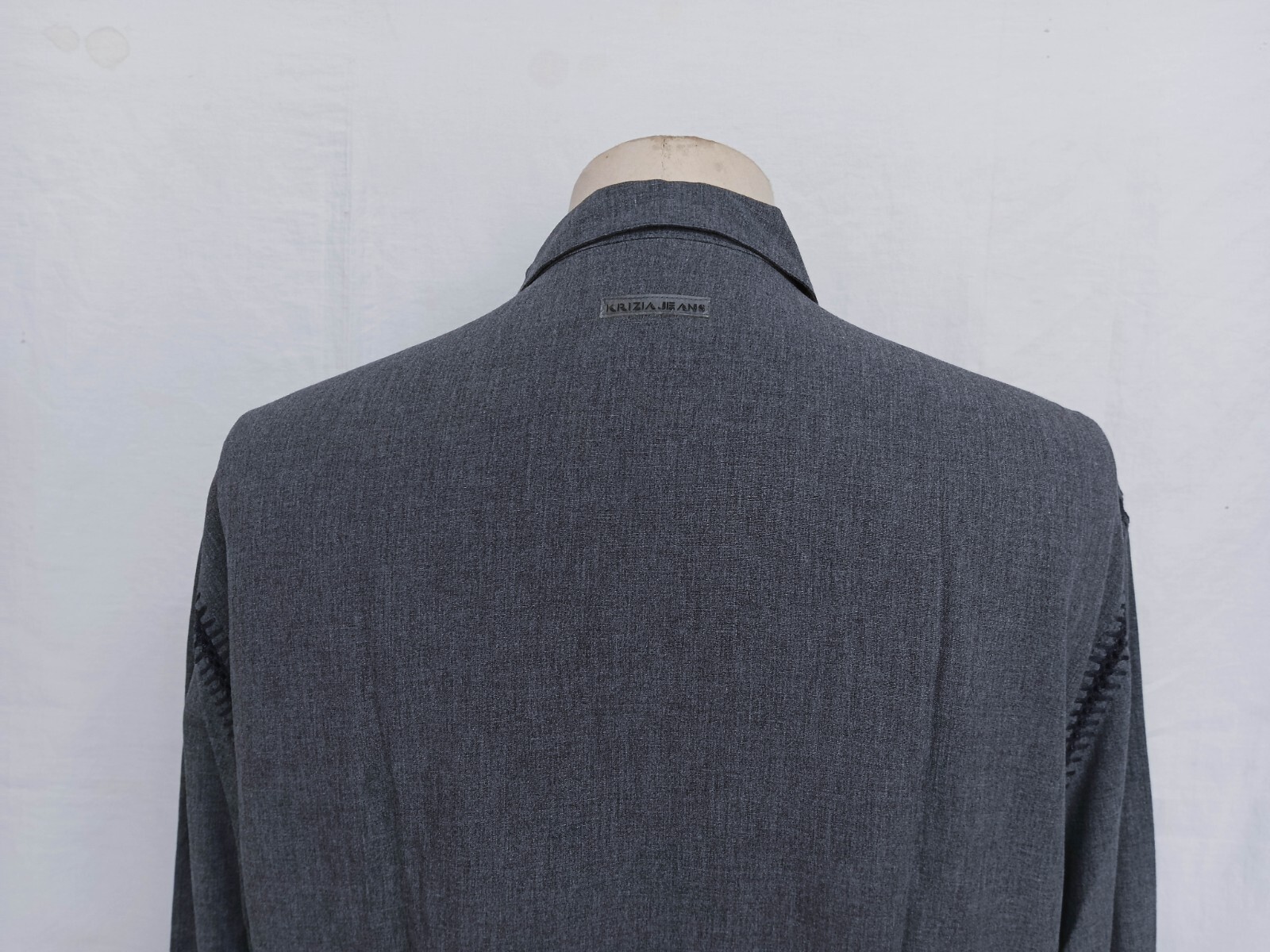 Beautiful Krizia Jeans solid gray crochet women's casual shirt long sleeve with buttons front authenticity guaranteed. The shirt has point collar with 5 emboss buttons closure on front. Knitting on shoulder and armpit. The color is gray with solid pattern. Fabric look like rayon. The shirt is pre-owned still in excellent condition, no holes, tears, stains. It has been laundered clean and fresh ready to wear. Don't miss out beautiful shirt.