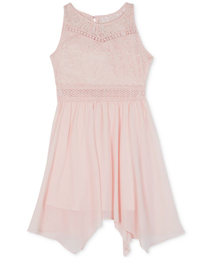 BCX Big Girls Lace Handkerchief Hem Skater Dress Med Pink Size 7