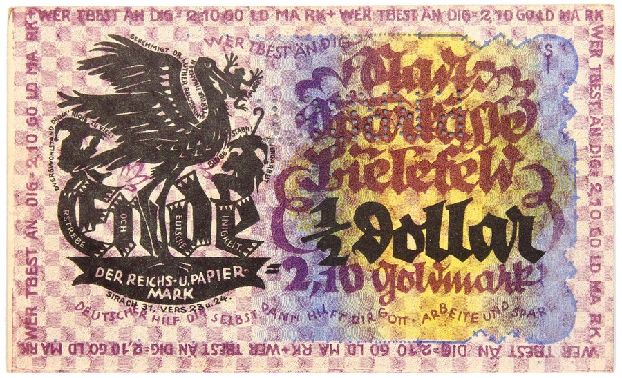 Westfalen - Stadt Bielefeld - BANKNOTE Notgeld - 1/2 Dollar = 2,10 Goldmark 1923.