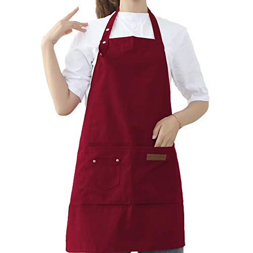 Durable Material Made from 35/65-Polyester/Cotton yarn dyed fabric, Adjustable Neck Strap, Long Ties Easily Alter to Different Sizes, 2 Large Pocket and 1 Small Pocket, Dirt-Proof and Water Drop Resistant, Economical & Practical. Product Size: 34.3 x 26 inch Package Includes: 1 x Apron Washing and care Instructions: Always use cold water to wash the apron. Bleaching, dry cleaning is NOT allowed. Wash with like colors. Do not use fabric softener. Clothes dryer is NOT recommended. Tumble dry on low heat. Iron on low heat. Aprons may get wet hitted by a large amount of water splash. So it's NOT 100% WATERPROOF. Broad Use: If you are not only using the pretty blank aprons for cooking, just rest assure that they are going to protect your full clothes from paint spots, clay, wood remains, grill grime, hibachi and other forms of dirt. It’s suitable for the following: Home cooking: Professional chefs, helpers, bartenders, etc. Serving: Bistro Waiters, nail waitress, servers esthetician hair hairdresser Hairstylist technician bartender etc Art & Craft: Painters, carpenters, artists, etc. Cleaning: Dishwashers, car cutting washers decorate, workshop workers smock, dish work etc. Other Industrial Purposes: Chemical engineers, mechanics, people etc. Meanwhile,this unisex apron can also be used as a chic gift idea for any chef or cook lover. Perfect Gift for birthday, anniversary, Christmas, Thanksgiving, Easter, Halloween, Mother’s day, Father's day or any other holiday.