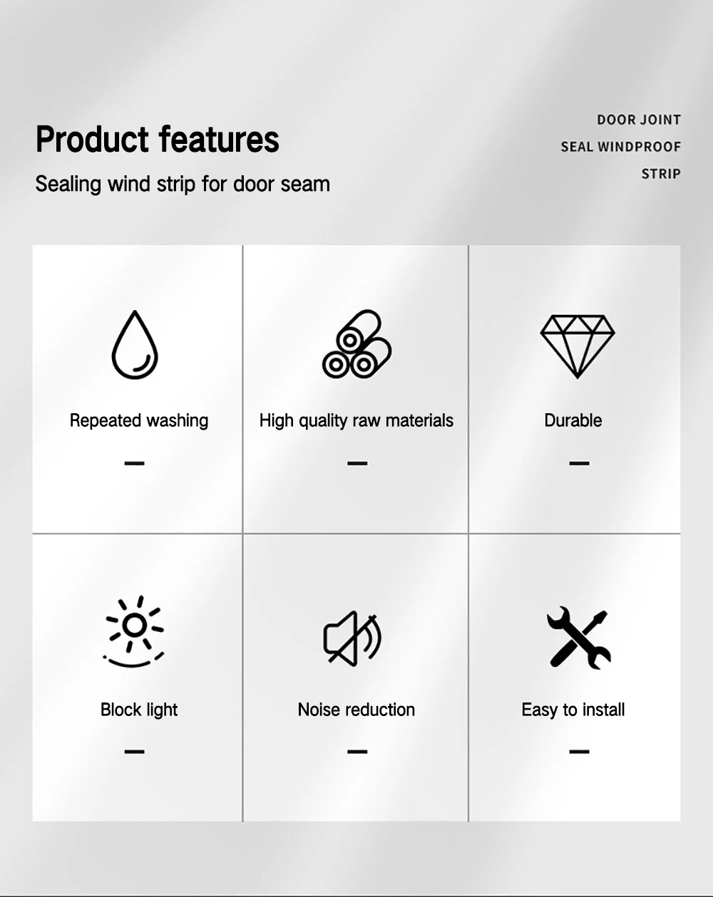 - 【Package Includes】Cover*1+ Foam stick*6+Velcro*2(When the door seam is loose use Velcro to fix it)