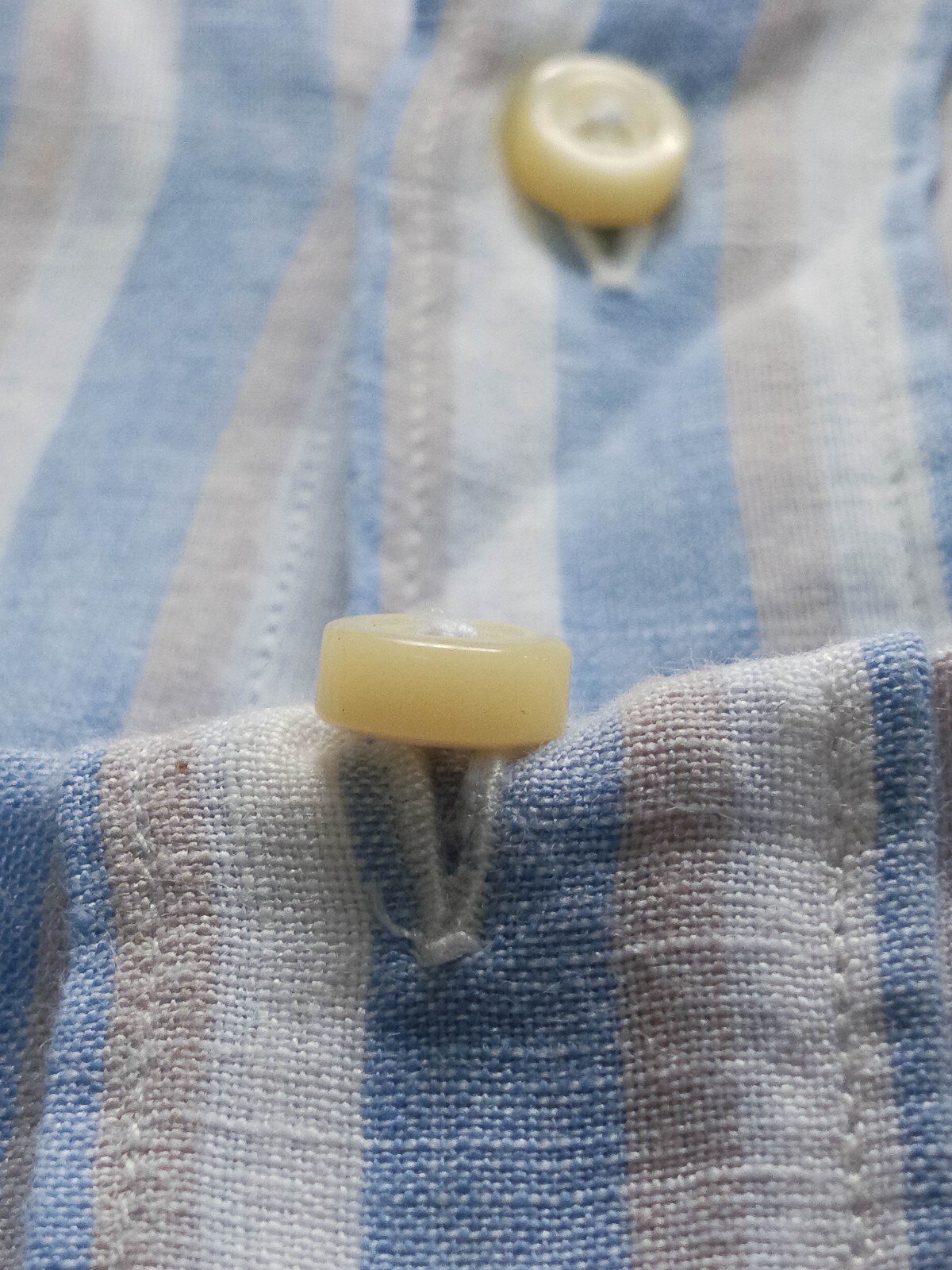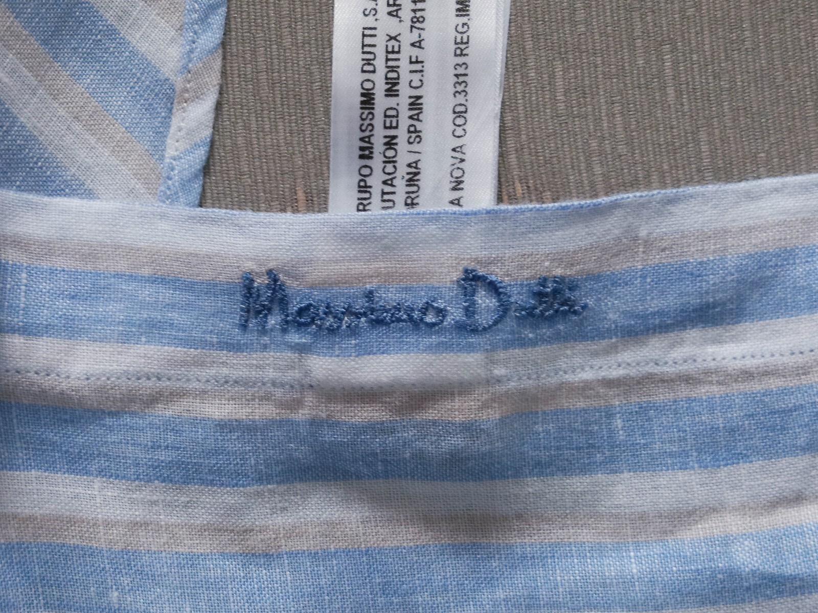Awesome Massimo Dutti made in Italy white sky blue tan striped men's casual shirt long sleeves with buttons front authenticity guaranteed. The shirt has button-down collar, single chest pocket on left with 7 buttons closure on front. The color is white, sky blue, light tan with striped pattern. Fabric is 100% linen. The shirt is pre-owned still in excellent condition nearly as new no holes, rips, stains. It has been laundered clean and fresh ready to wear. Don't miss out cool and awesome shirt.