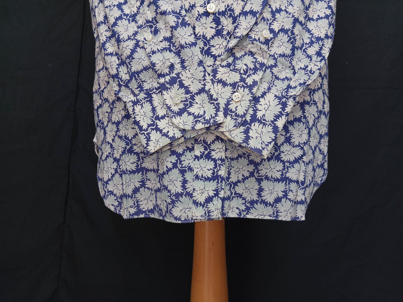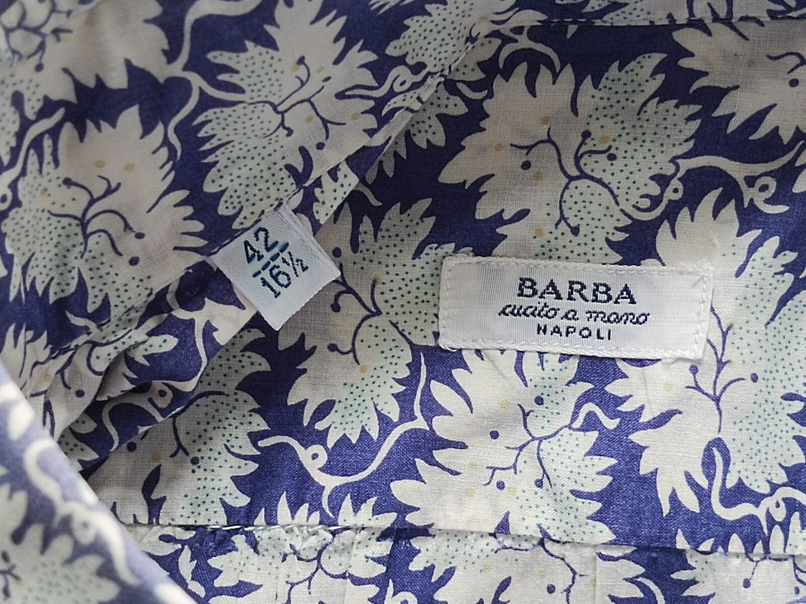 Luxury Barba blue & white floral men's dress shirt authenticity guaranteed. Check out awesome designer dress shirt long sleeves with buttons front. The shirt has button-down collar, rounded cuff with 7 thick mother of pearl buttons closure on front. The color is blue, white with floral pattern. Fabric is 100% silky cotton. The shirt is pre-owned still in excellent condition but the cuff of the shirt is a little bit frayed. Please see the photos. It has been laundered clean and fresh ready to wear. Don't miss out luxury and perfect dress shirt.