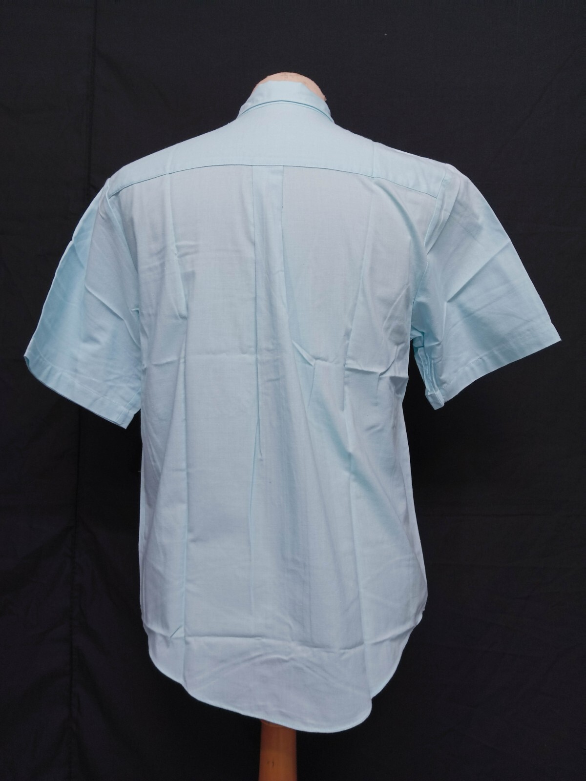 Awesome McGregor Contemporary aqua blue men's casual shirt authenticity guaranteed. Check out perfect shirt short sleeves with buttons front. The shirt has button-down collar, single flap chest button pocket on left with 7 buttons closure on front. The color is aqua blue with solid pattern. Fabric is 65% polyester, 35% cotton. The shirt is pre-owned still in excellent condition nearly as new no holes, rips, stains. It has already laundered clean and fresh ready to wear. Don't miss out cool and awesome designer shirt.