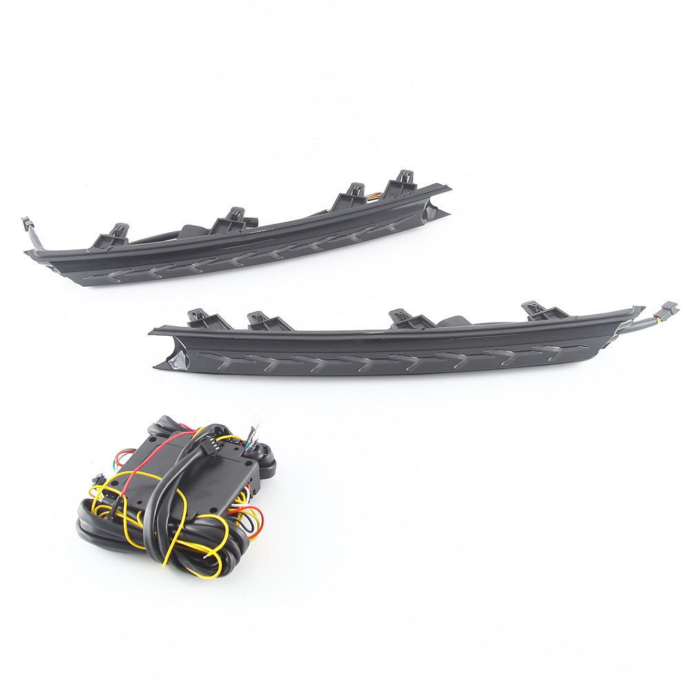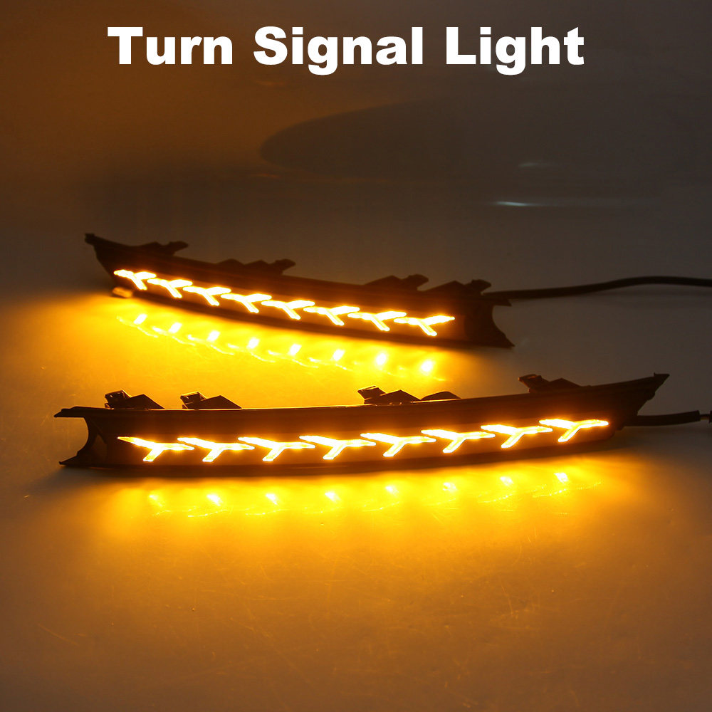 - 2pcs Black Lens LED Front DRL Turn Signal Lights