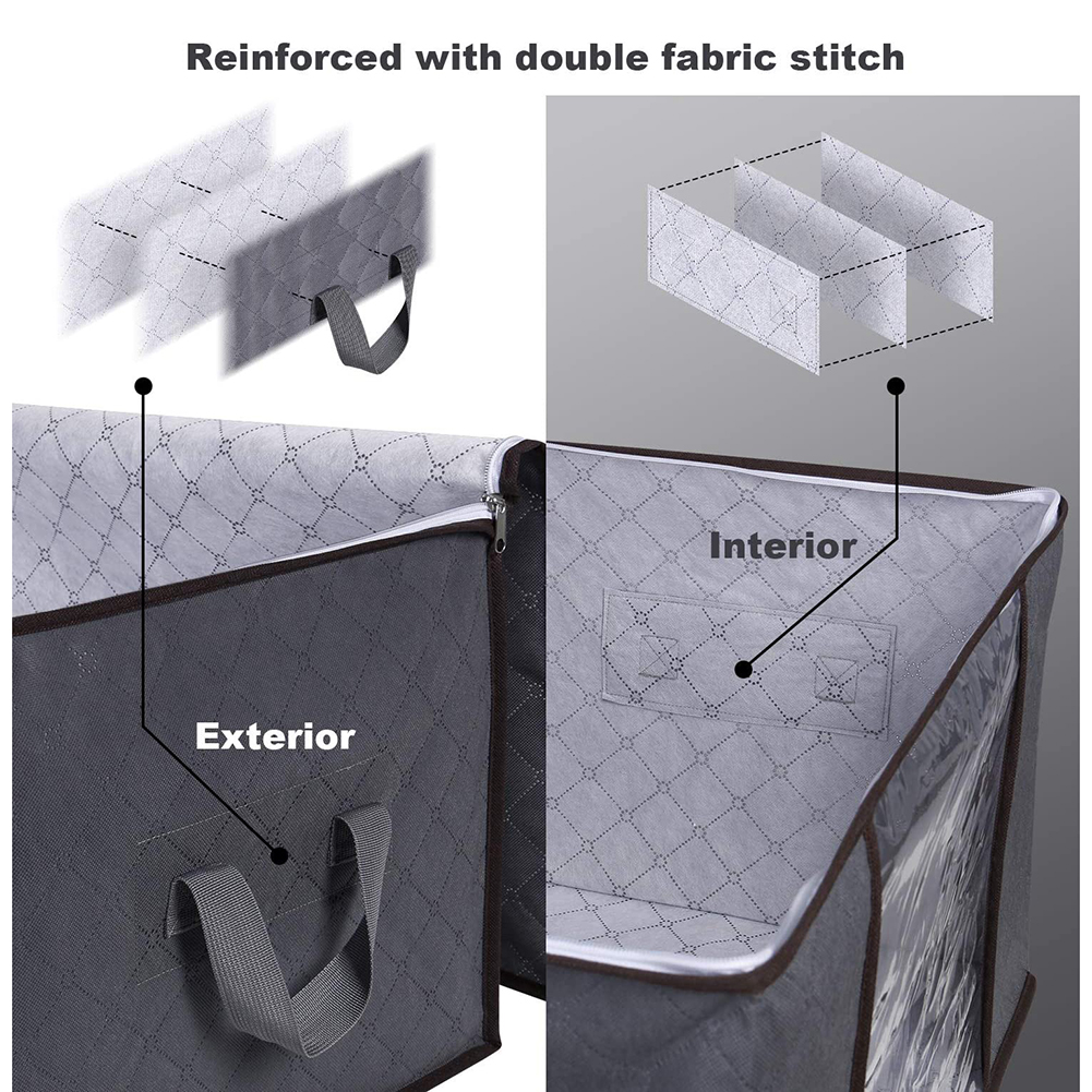 Are you looking for storage bags to replace plastic vacuum bags? Are you looking for large storage bags to store extra blankets, pillows, towels? Are you looking for some big size storage bags to pack your clothes especially winter coats? Our large capacity breathable clothing underbed storage bag is a good solution for you. Easy Store, Simple Life! Do you have trouble in house life? Hangers are not enough / Trouble to store clothes / The wardrobe is crowded and messy / No enough space to put winter coats / Moldy and damp putting on wardrobe. All your annoyance can be solved now. Large Capacity Meets All Your Needs: The clothing storage bag comes in a set of 3, each bag is 84L large capacity, It is spacious enough for your comforters, blankets, pillows, plush toys, jackets or other clothes. It can be stored in your wardrobe, under the bed or stacked on top of one another, folds back away flat when not in use. Strong Thickened Handles: Strong and soft carry handles on each side of the storage bag for easy handling. It is portable to lift the storage bag with two reinforced carry handles for stacking or transporting from one place to another. Easily moves to shelves, closets, etc. Upgraded Breathable Fabric: Made from premium three-ply composite non-woven fabric, it is breathable that can promote ventilation and protects your stored items from moisture and dust. Also, it can prevent bacterial growth to avoid peculiar smells in your pack. Stainless Steel Zip Closure: The foldable and two-way zipper closure design make pack/unpack quickly, no matter for the storage between seasons or prepare for traveling, moving, or as needed. Large Clear Window: Wide transparent see through window in the front allows quick viewing, makes it extremely easy to find the wanted items. Now you don't need to get the ladder to see what's inside the storage bags any more. Ideal storage for your home: Store and protect clothing and household items with convenient organizer bags. The storage bag set can be used for closet or under the bed. It is suitable for dormitory, attic, basement and bedroom use, also great for college dorm and more. Size: 23.6 x 15.7 x13.8inch (60 x 40 x35cm)