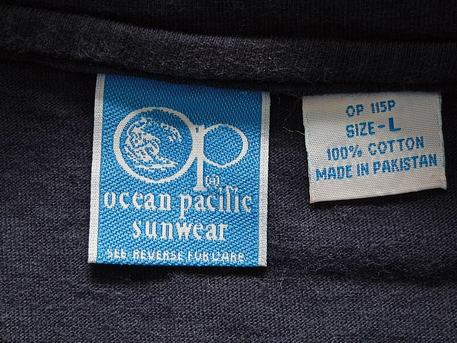 Awesome OP Ocean Pacific men's polo shirt short sleeves with button front authenticity guaranteed. The shirt has point collar, embroidered with logo on left chest, 2 emboss buttons closure on front, The color is navy blue, red, yellow with striped pattern. Fabric is 100% cotton jersey. Straight hem slit at side. The shirt is pre-owned still in excellent condition no holes, tears, stains. It has been laundered clean and fresh ready to wear. Don't miss out cool and awesome polo shirt.