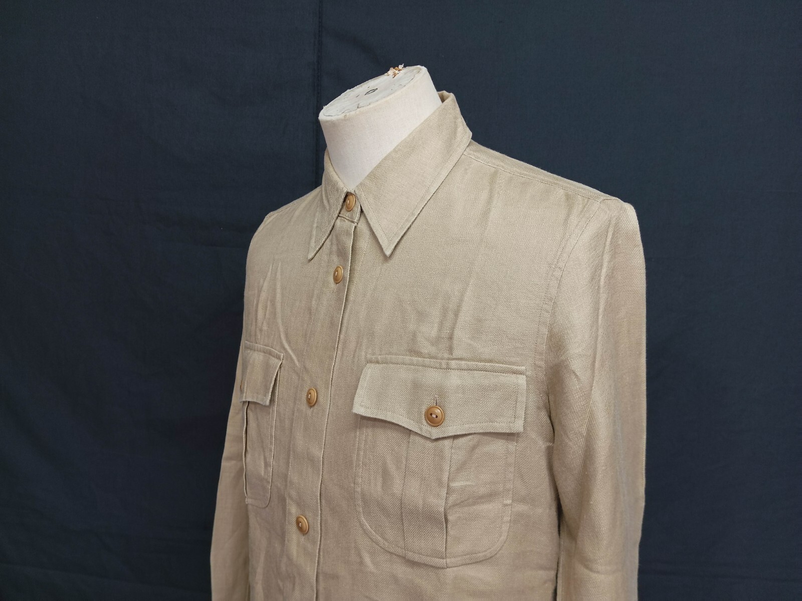 Gorgeous Lauren Ralph Lauren khaki women's top/shirt/blouse long sleeve with buttons front authenticity guaranteed. The shirt has point collar, double flap chest button pocket on front with 6 buttons closure on front. The color is khaki with solid pattern. straight hem slit at side. Fabric is 100% linen twill. The shirt is pre-owned still in excellent condition no holes, rips, stains. It has been laundered clean and fresh ready to wear. Don't miss out beautiful and awesome casual shirt.