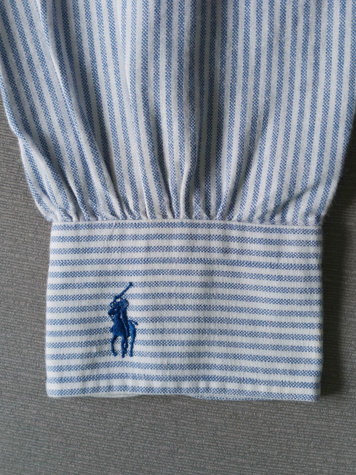 Awesome Polo Ralph Lauren white & blue striped women's casual top/shirt long sleeve with buttons front authenticity guaranteed. The shirt has button-down collar, single chest pocket on left with 7 buttons closure on front. The color is white, blue with striped pattern. Fabric is 100% cotton oxford. The shirt is pre-owned still in excellent condition no holes, rips, stains. It has been laundered clean and fresh ready to wear. Don't miss out beautiful and awesome shirt.