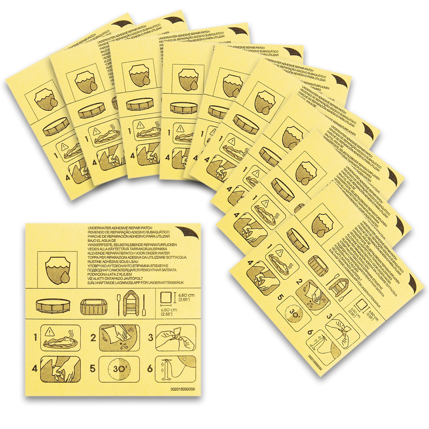 Das Reparatur-Set besteht aus insgesamt zehn Flicken aus robustem Vinyl, welche ideal zur Reparatur von Booten, Pools, Whirlpools sowie Luftmatratzen eignen. Dank ihrer Wasserfestigkeit können die Reparaturflicken auch problemlos für Löcher unterhalb der Wasserlinie verwendet werden.