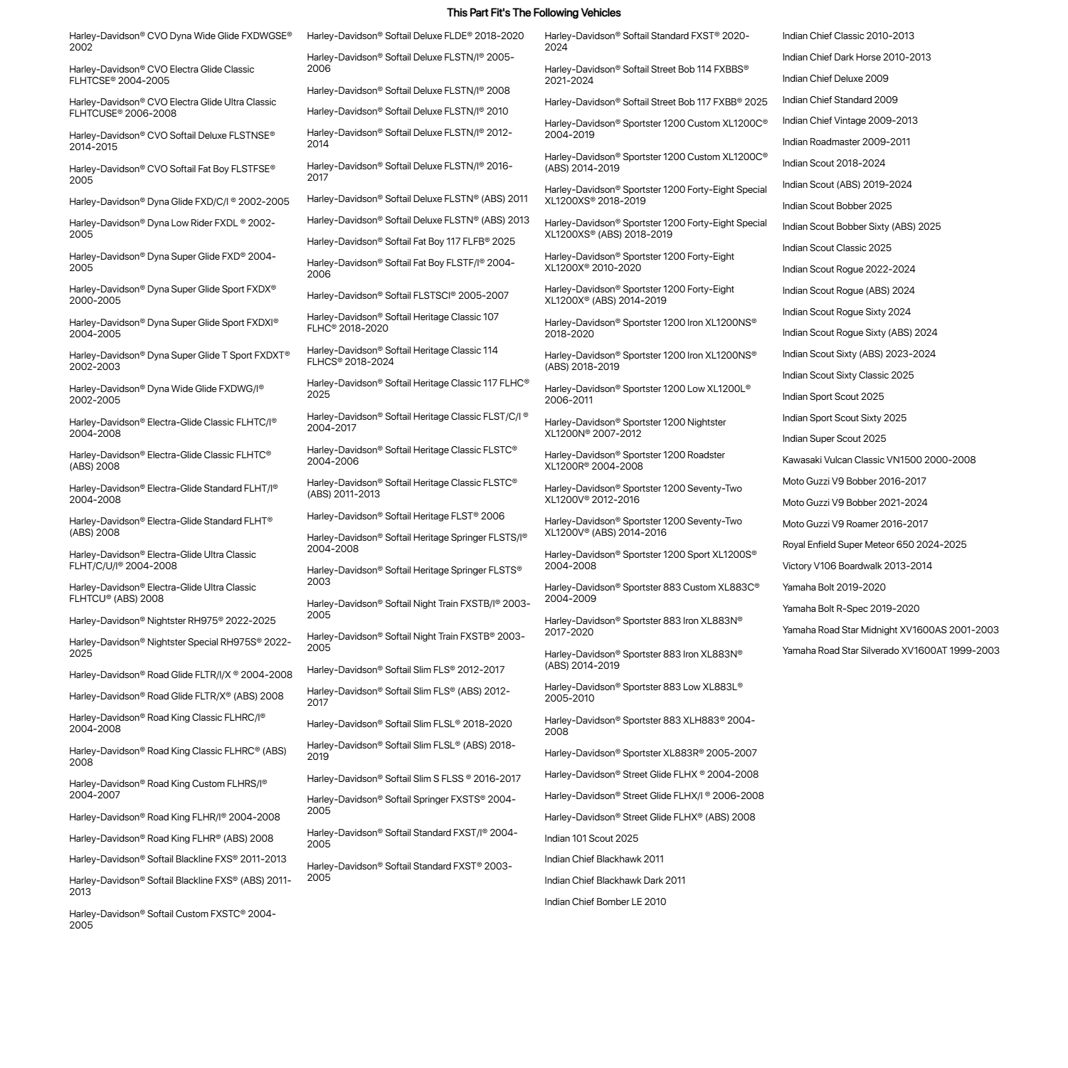 When selecting new motorcycle tires, be sure they meet the requirements of your motorcycle and its expected usage. Please use our vehicle drop down selector at the top of this page to assist you in choosing a tire for your vehicle. Always refer to your owner’s manual for correct tire specifications for your vehicle.