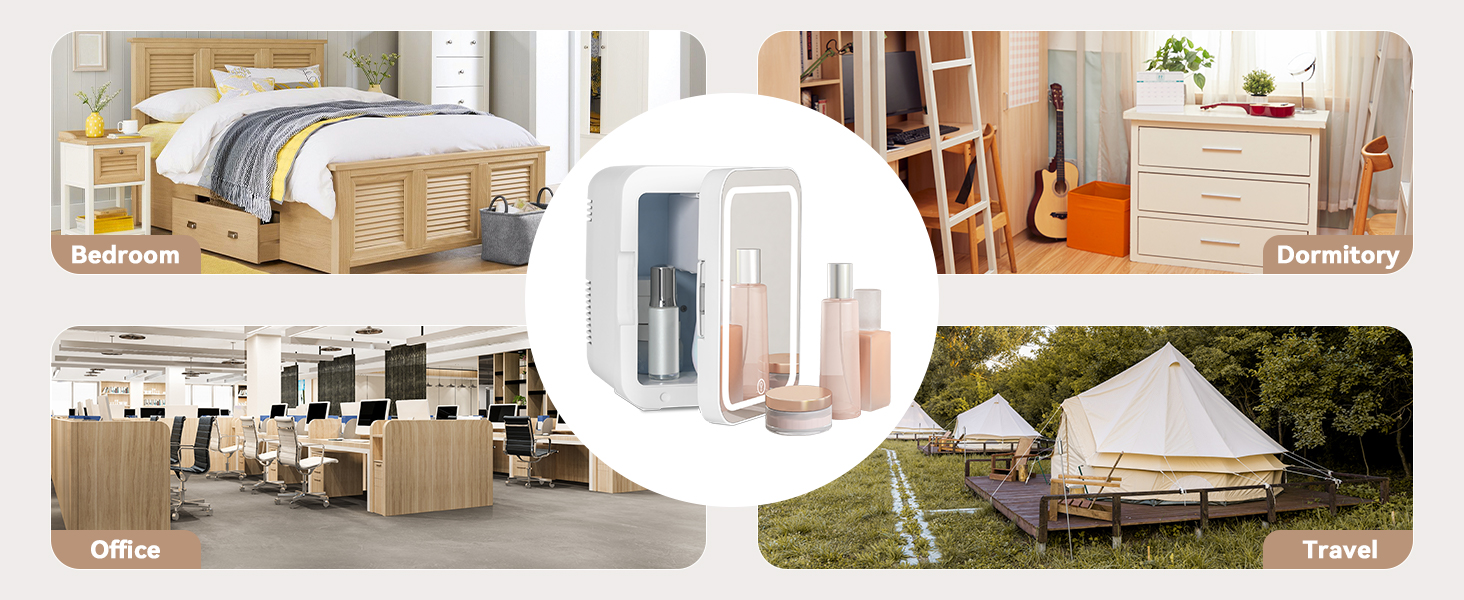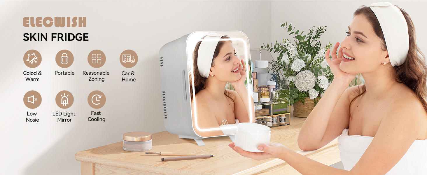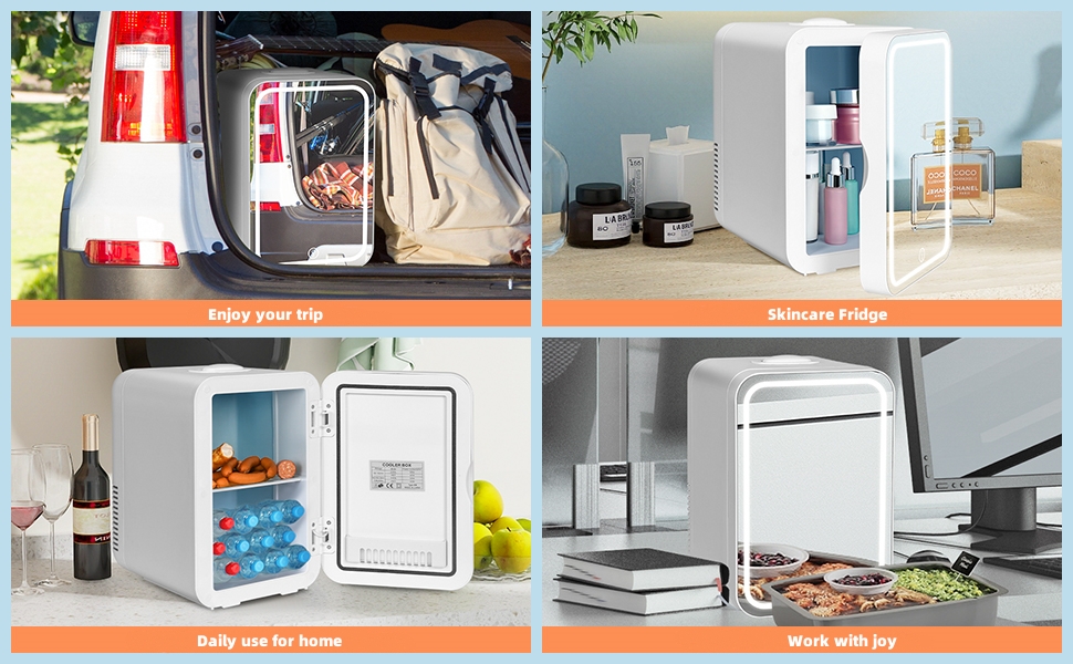 Upgraded LED lighted with mirror will bring many surprises. The mirror has 3-mode lights, which you can use to complete your makeup. It's perfect as a Skincare Fridge to keep your makeup and skincare products fresh longer while giving your skin tone a cooling effect!