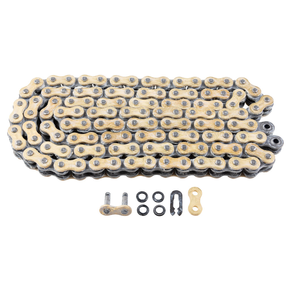 Gold color The ultimate ATV chain, developed to withstand the severe stresses of ATV riding, yet lightweight with maximum performance. QUAD chains feature the patented Z44 sealing rings, which greatly improve performance and wear life, making previous X-ring and Z-ring chains obsolete. 50% reduction in friction compared to traditional O-rings. Constant lubrication from special high-temperature grease in the critical pin/bushing area provides long life. High-carbon alloy pins to minimize wear and increased roller thickness to prolong durability.