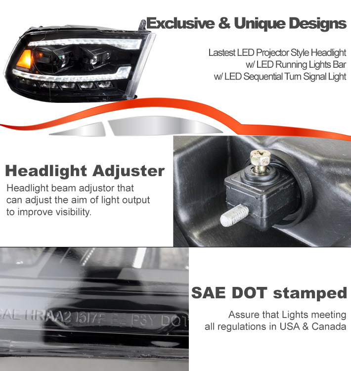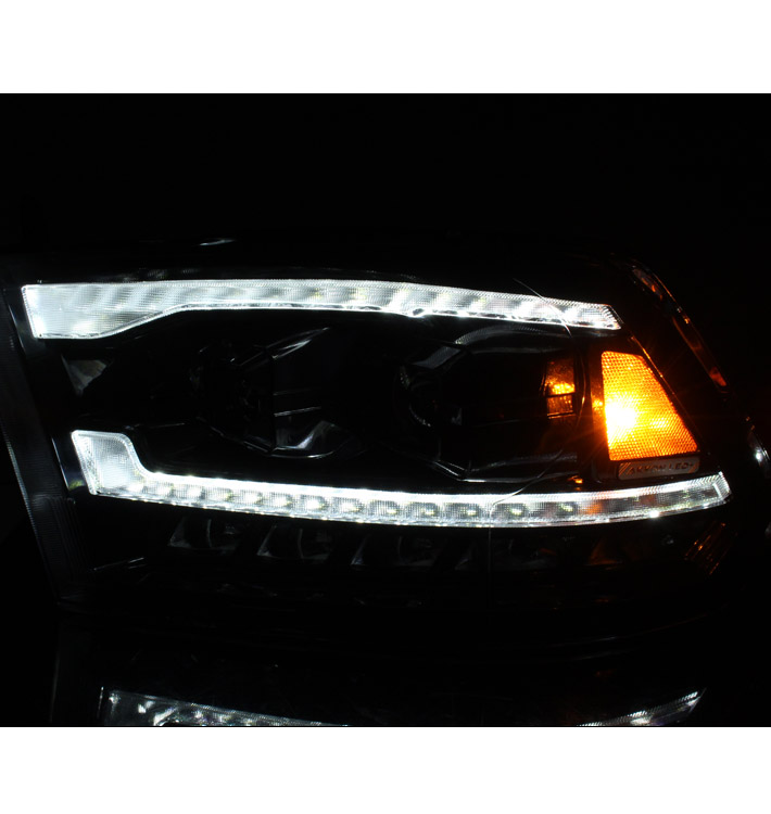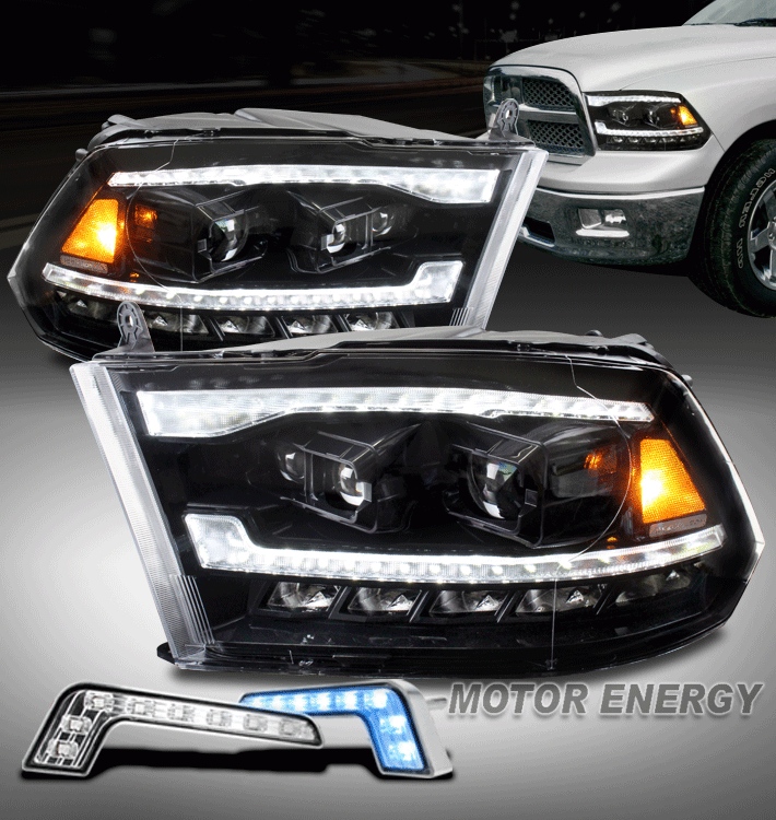 Suitable For 2009-2018 Dodge Ram 1500 / 2010-2018 2500 3500 Full LED Projector Headlights w/6.25" Blue LED DRL - Black