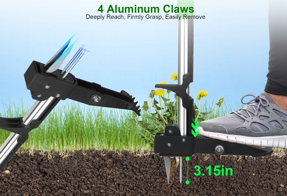 - Upgraded 4 Claws Design:Equipped with 4 stronger 3.15in claws with serrated teeth,can deeply reach to various soils,firmly grasp the handle and easily remove almost all type of weeds. A professional tool for your garden,backyard and front yard landscaping.