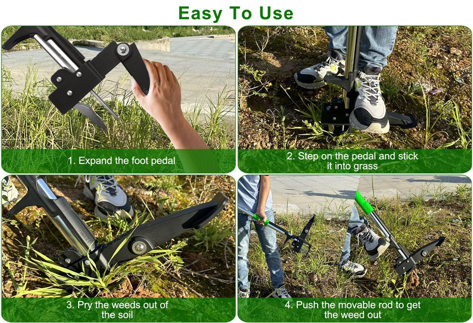 - Efficient & Easy to Use:No installation is needed,you can directly use this effective weed puller after getting it. Just apply force on the foot pedal and push the claws to penetrate the ground,pull your weeder upward to lift the weeds. Easy operation makes it not only suitable for young people,but also for other middle-aged and elderly people.