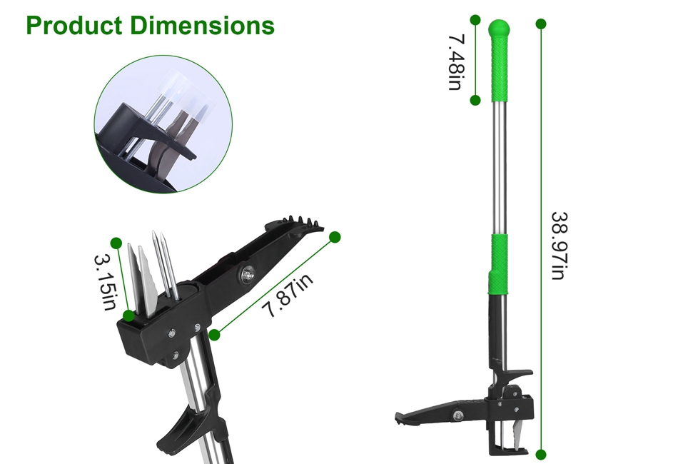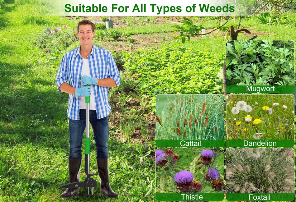 - Wide Application:This 38.97in weed remove tool has ergonomic design,perfect for eliminating dandelions,crabgrass,chickweed,thistle and other types of weeds. Ideal gift for your friends who enjoy working in the yard.