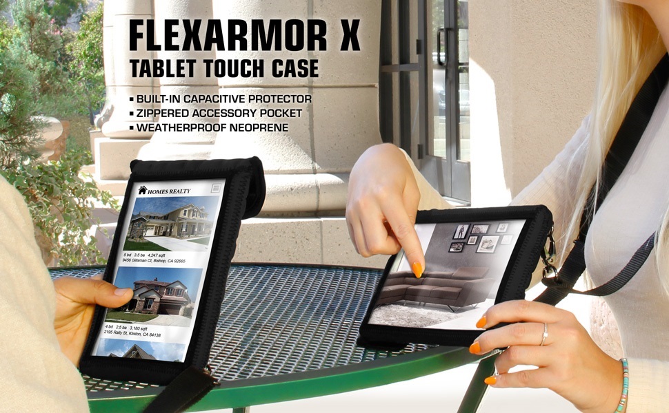 Our FlexARMOR X tablet cases feature a thick reinforced Neoprene padding that helps absorb shock from dings and bumps, while also withstanding the grind from daily wear-and-tear. The rugged, yet flexible, material of the FlexARMOR X fits like a glove, snugly conforming to your gadget's shape.