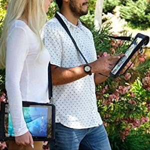 You can also carry your tablet comfortably using the adjustable shoulder strap. Wear it as a crossbody sling, over one shoulder or around your neck when walking through airports, theme parks, restaurants or around the house. Four built-in strap loops let you mount or carry the case in portrait or landscape orientation so you can choose the viewing angle that works best.