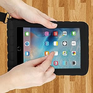 While inside the tablet sleeve, your device's screen remains usable through the touch-friendly built-in capacitive screen protector. This makes a perfect tablet sleeve for employee fleets, frequent air travelers, event and conference coordinators, mobile retail setups, classroom devices, and many more.