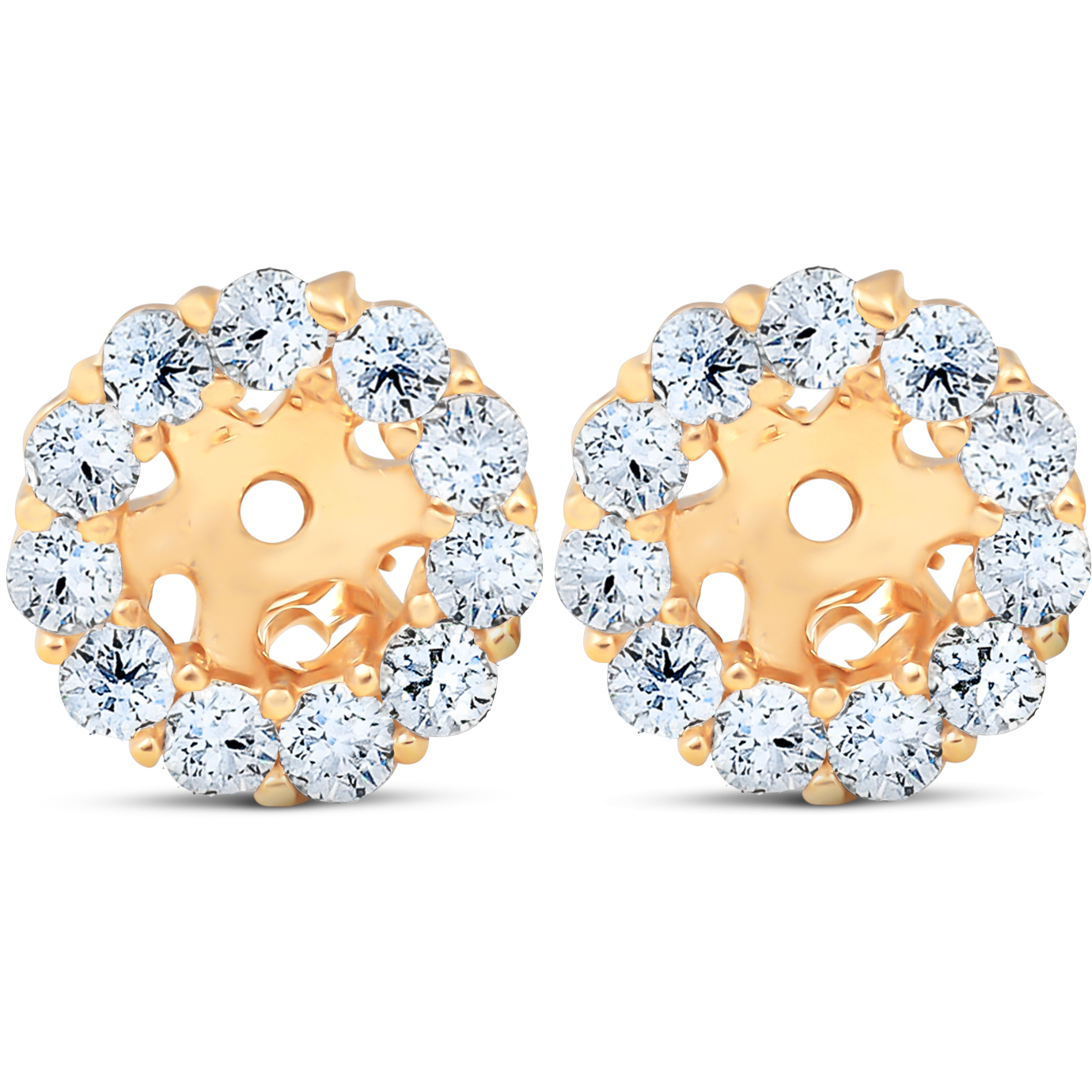 Enhance your diamond or gemstone earrings with these 14k yellow gold diamond earring enhancers. All diamonds are set in solid 14k yellow gold and can fit up to 4mm round stones.