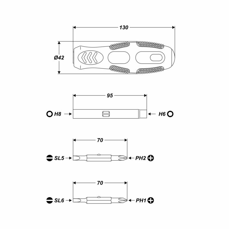 1 x doppelseitige Bit [PH2 - Schlitz 5 mm]