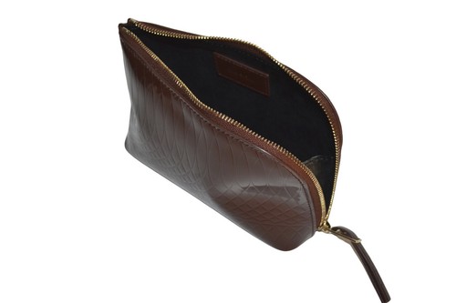 This stunning Cosmetics bag is carfted in Spain from premium calf leather, a basic zipped design, with embossed geometric pattern which replicates the external facade of Paul Smiths flagship store at No 9 Albemarle St London