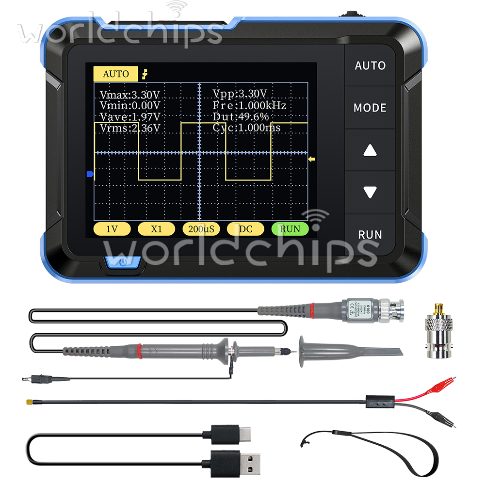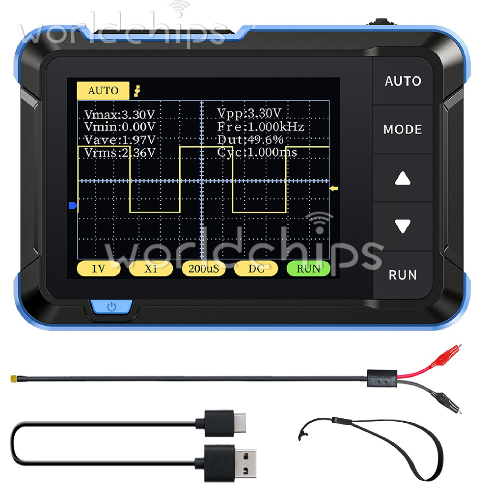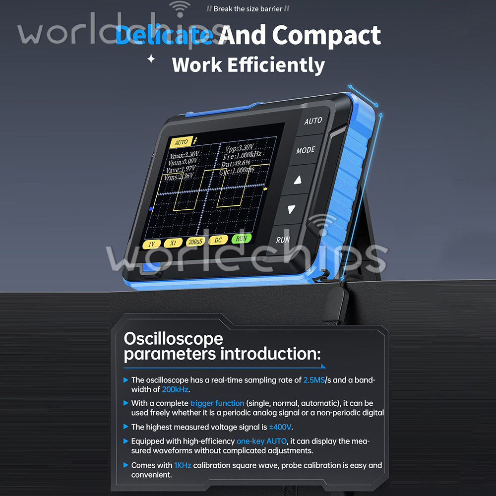 1. The oscilloscope has a real-time sampling rate of 2.5MS/s, 200kHz bandwidth