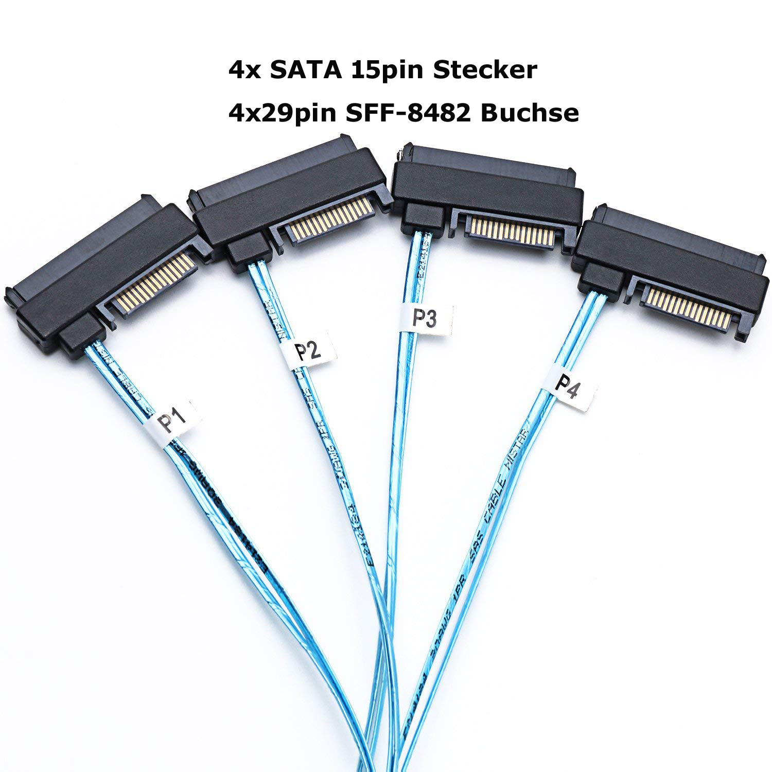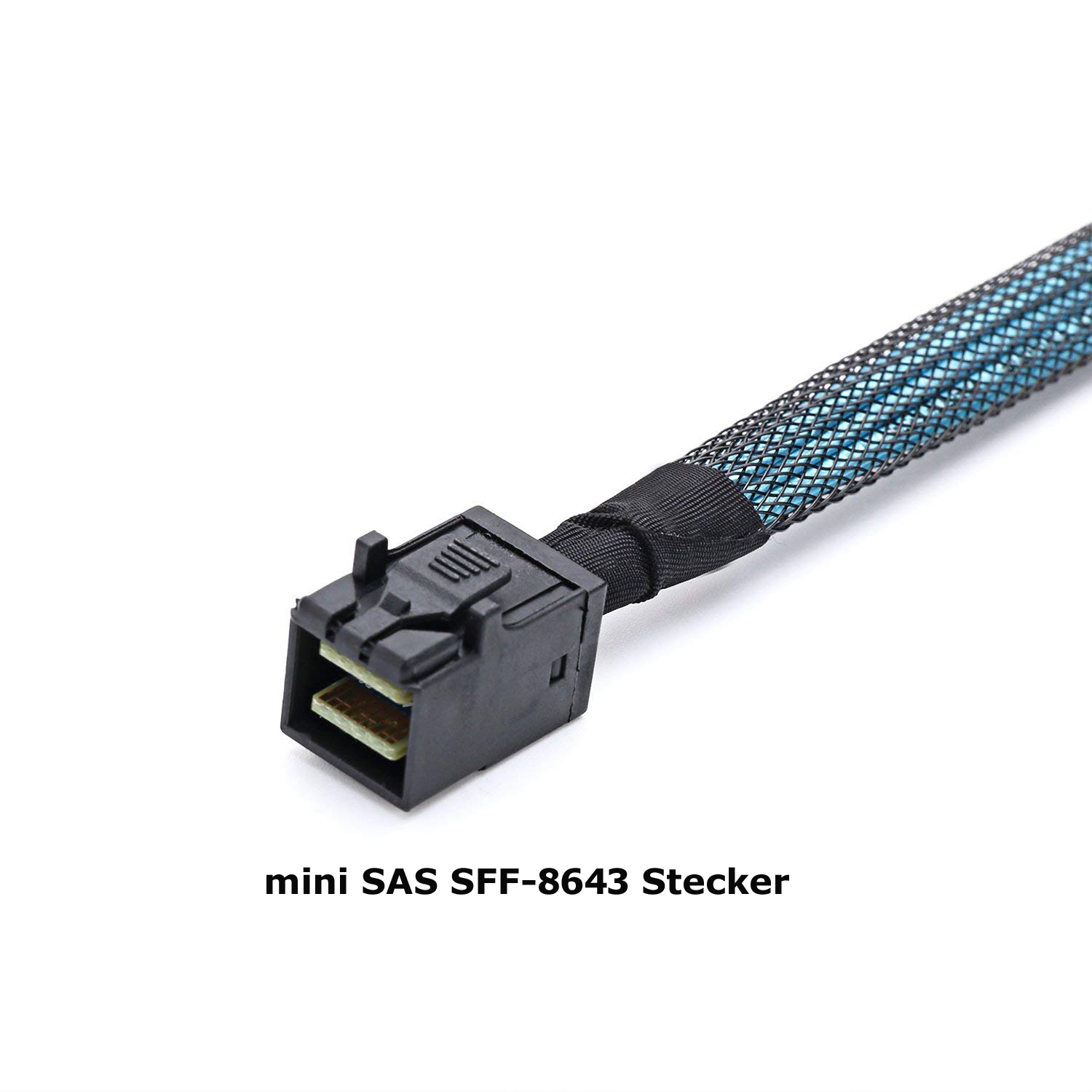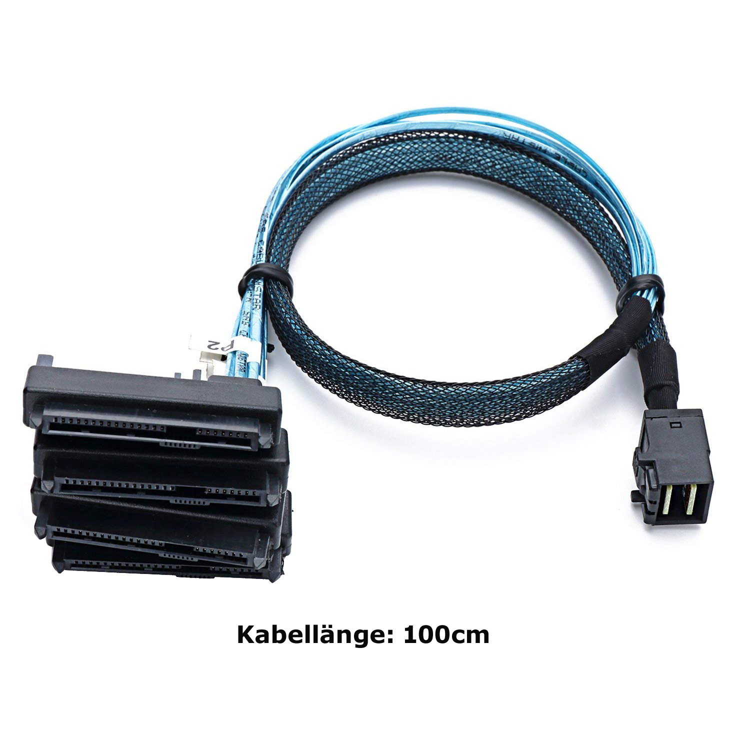 Mini SAS (SFF-8643) Stecker zum Controller und 4x SAS 29 (SFF-8482) ist Ziel.