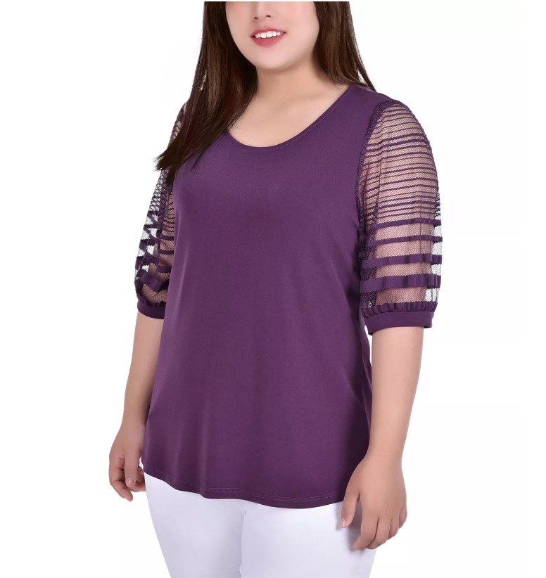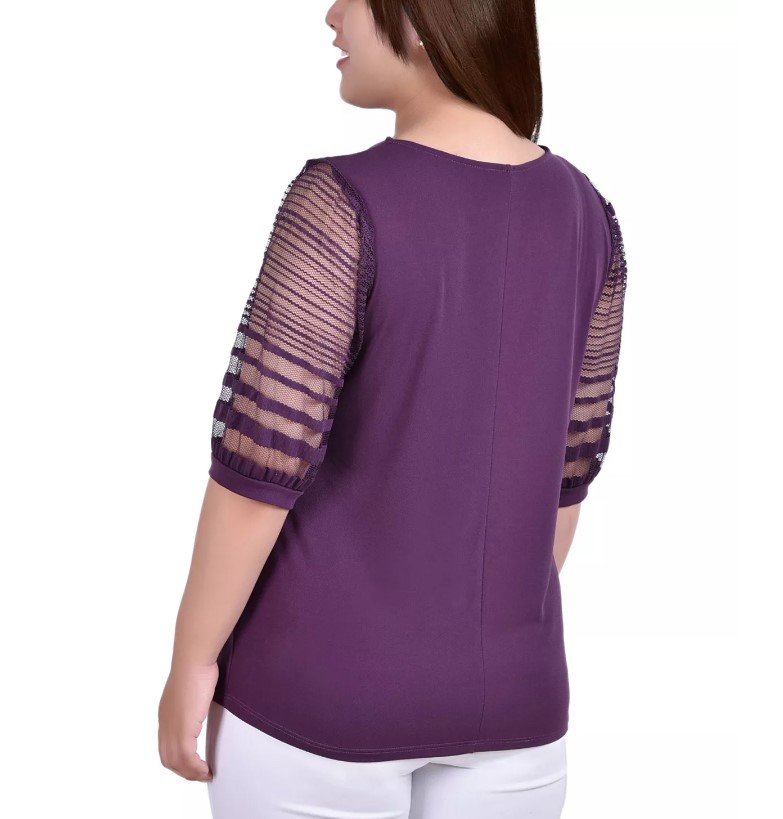 NY Collection Women's Crepe Burnout Sleeves Top Blackberry Wine Size XL