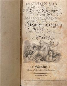 (Two Volume Set) A Dictionary of Polite Literature; or, Fabulous History of the Heathen Gods and Illustrious Heroes, published in 1804. A beautiful reference set, in a stunning custom binding in quarter marbled paper with blue spines and labels. Sections outline every aspect of the ancient pagan traditions.