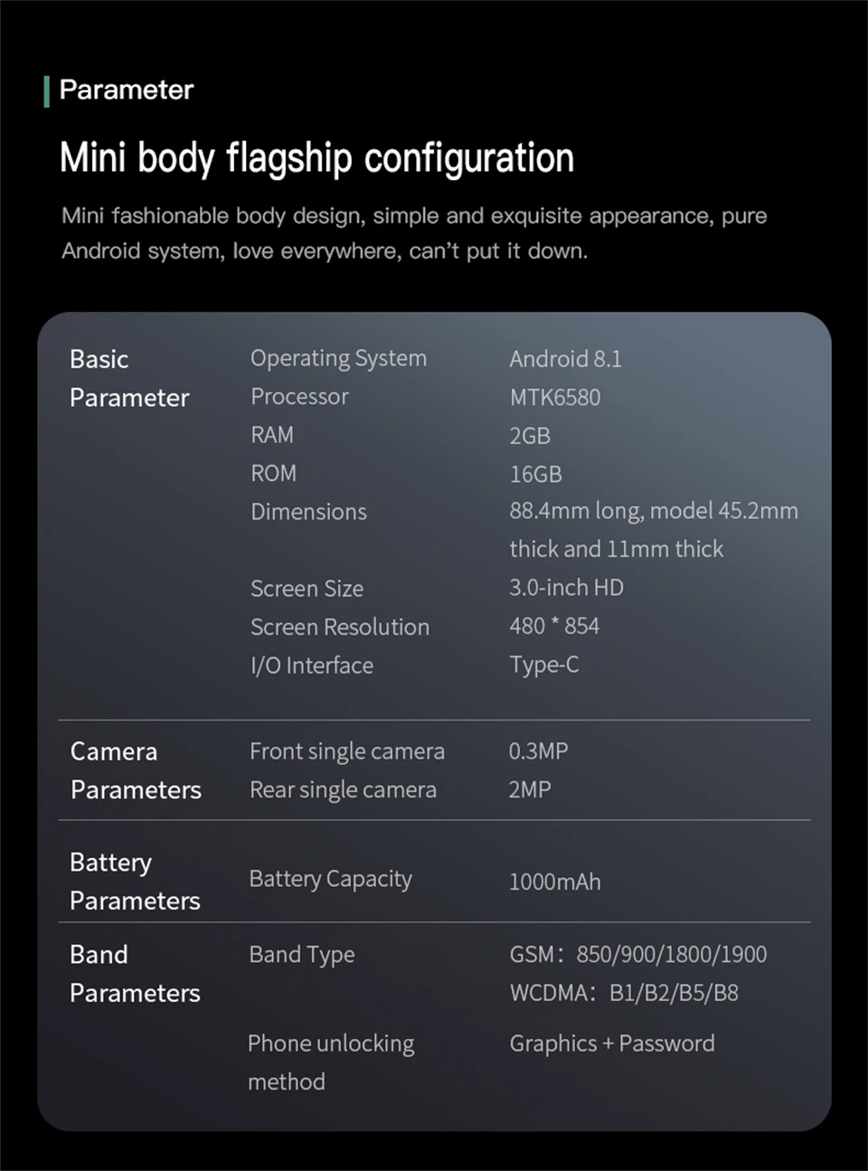 SOYES S23 Pro Mini Smartphones 3G Network 2GB+16GB Android 8.1 Dual SIM Standby 3.0 Inch HD 1000mAh Battery Small Mobile Phone