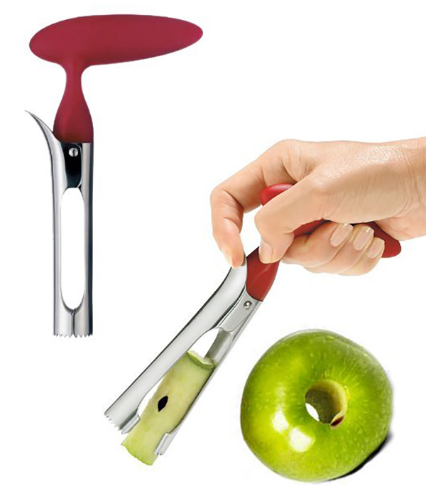 Bright Kitchen™ Lever Apple Corer Tool is the EASIEST and FASTEST way to remove the unwanted core from Apples and Pears. *Speed up your Prep time! Why waste time when prepping Apples? We’ve all struggled to press down an unsharp apple slicer or wasted fruit with uneven knife cuts - NO MORE! The new Bright Kitchen Lever Apple Corer is a breeze to use. Save Time when prepping for: JUICING BLENDING DEHYDRATING FRUIT DESSERTS *The Ergonomic handle provides a steady grip, making it a breeze to twist push the tool through the fruit to pull out the core. *The tool opens and closes like a scissors with a unique lever. 1.PRESS the tool through the center of the Apple or Pear while in the closed position. The Stainless Steel Serrated Edge easily slides through the skin into the fruit. 2.PULL the tool back out and the core separates out cleanly and efficiently - No damage to the fruit! 3.ENGAGE the unique lever with your thumb and the tool opens to release the unwanted center core - the core will NOT get stuck in the center like other corer tools - SIMPLE & EASY. The tool works effortlessly with all types of Apples and Pears. GREAT for Juicing and Blending - get the most fruit in your recipes with the least amount of waste. You will only be separating the unwanted center core. The large diameter of the center shaft will get out all the seeds and inedible center core of all sizes and styles. **Make perfect shaped Apple Rings for Dehydrating and Fruit Desserts. Food Grade Stainless Steel will not bend or break, Anti-Rust, NON TOXIC- Easy to Clean - DISHWASHER SAFE top rack. TIP: for Apples with a crooked core push the tool in the from the BOTTOM of the fruit. BRIGHT KITCHEN TOOLS come with a full guarantee - We are not happy until you are!