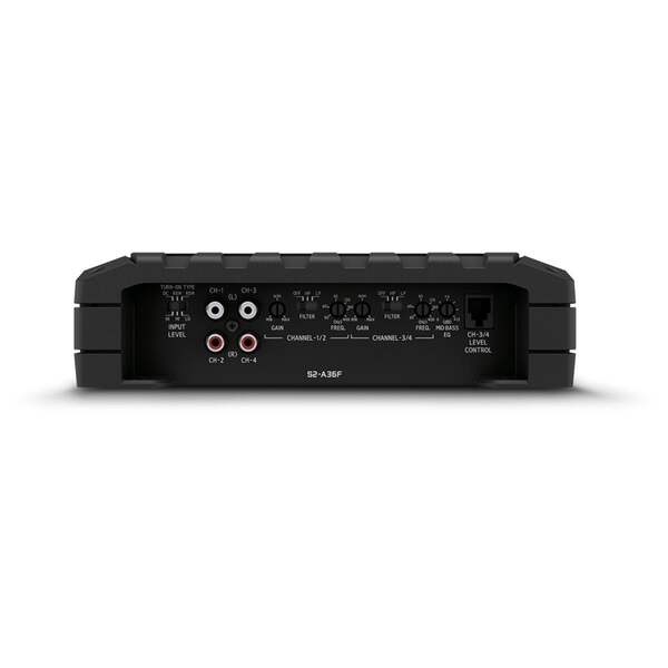 The S-Series S2-A36F 4-channel amplifier delivers 60 Watts RMS @4 Ohms or 90 Watts RMS @2 Ohms of pristine high-fidelity signal to each of your car's front and rear speakers, adding sweet, clear sound to your vehicle.