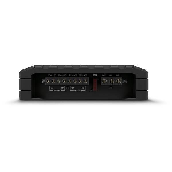 The amp brings your music to life being Hi-Res Audio certified, with its precise details and emotional power clearly revealed with a frequency response up to 40kHz. For a 3-channel 2-way system, you could also use the amp to drive a pair of front speakers with 60 Watts RMS each, while powering a subwoofer with 180 Watts RMS from the bridged rear channels. A variable mid-bass boost on those rear channels allows you to dial in some extra kick and impact to your system's low-frequency sound. You can even add the optional wired remote RUX-KNOB2 to control the level of the rear channels from your front seat.