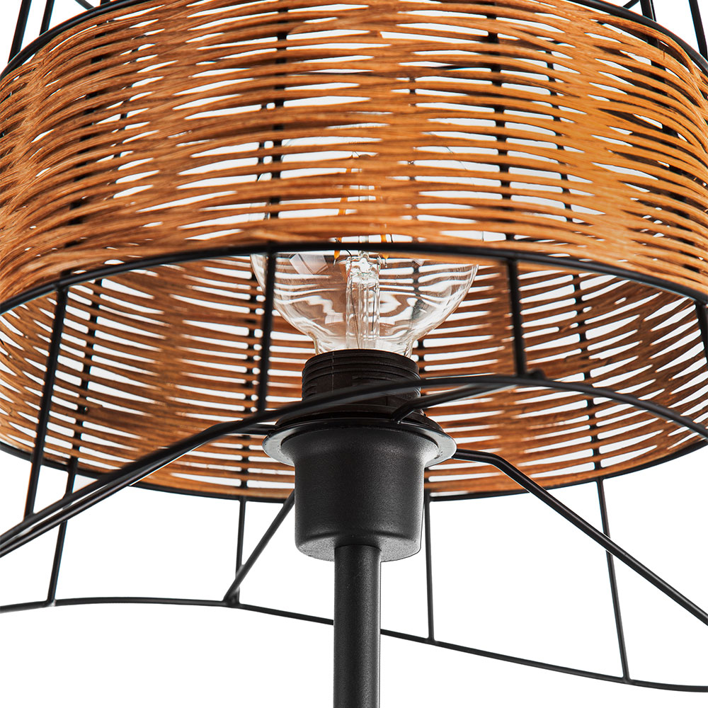 Diese dekorative Stehleuchte im angesagten Käfig-Design besticht mit einem interessanten Materialmix aus Metall und Rattan und avanciert dadurch zum echten Hingucker in Ihrem Wohnbereich.