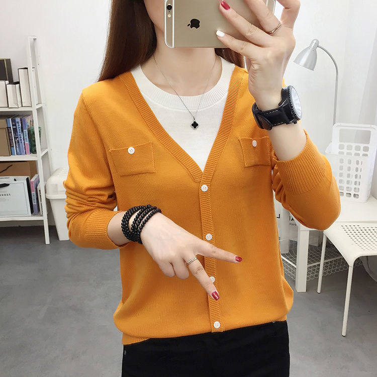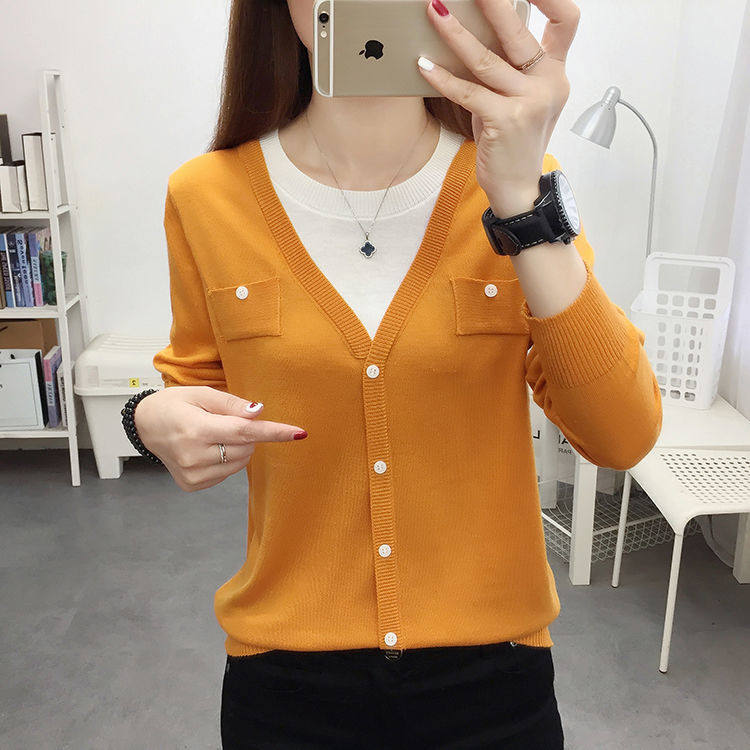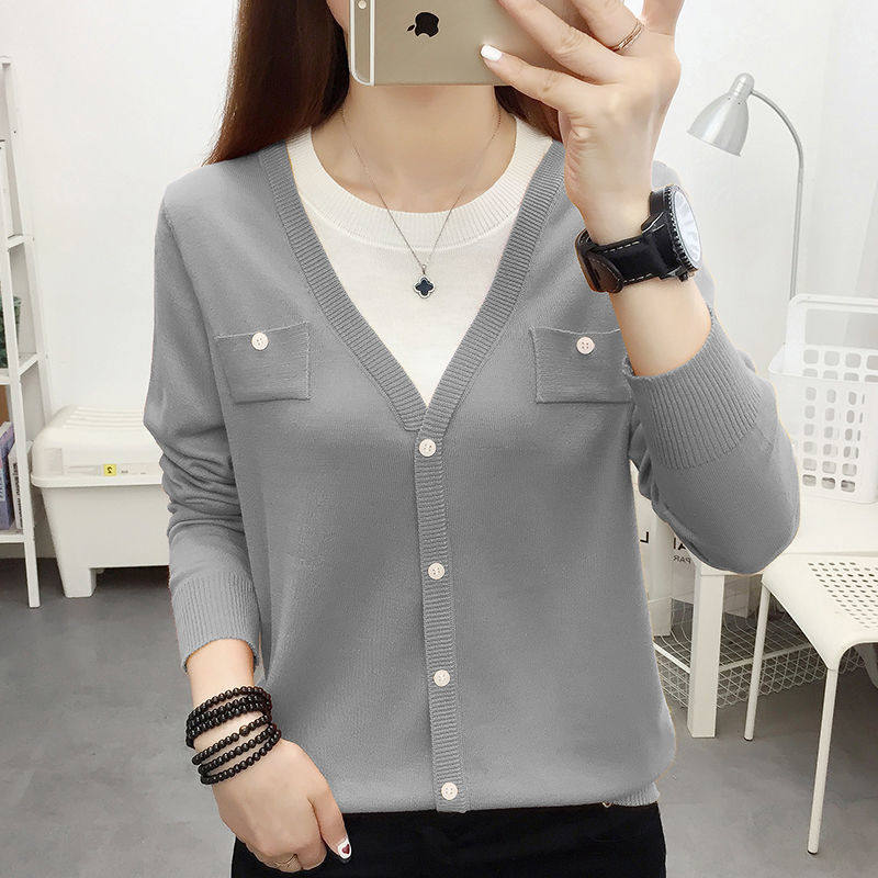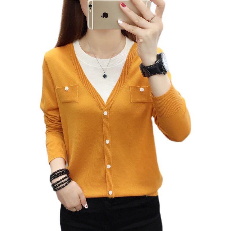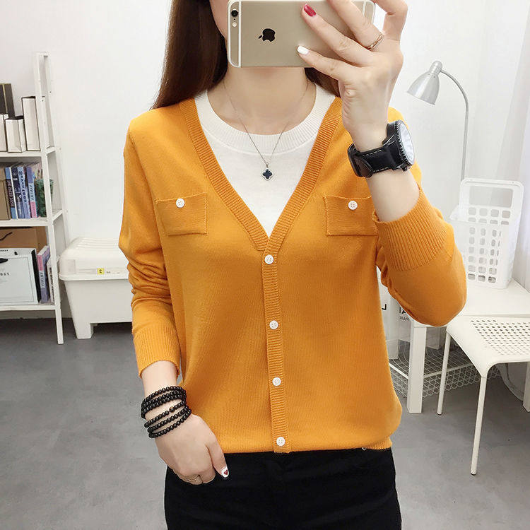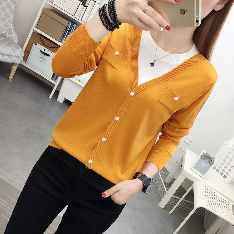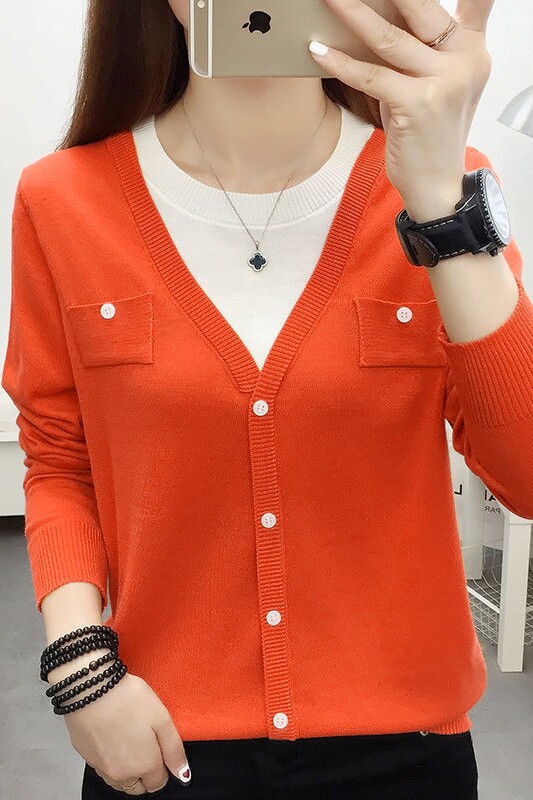 Women Knit Shirts Crew Neck Long Sleeve Sweater Buttons Fall Casual Tunic Tops