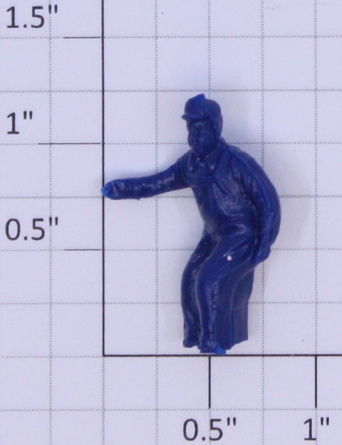 This listing is for (1) units of this product. Please see picture(s) for details. This is a Lionel 3464-17 Blue Operating Boxcar Figure w/ One Arm Out and a T-Slot. These figures are made of brittle plastic and not rubber.