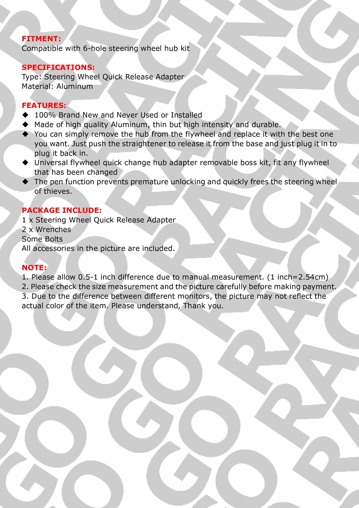 Red Quick Release Hub Adapter Snap Off Boss Kit For Car 6 Hole Steering Wheel