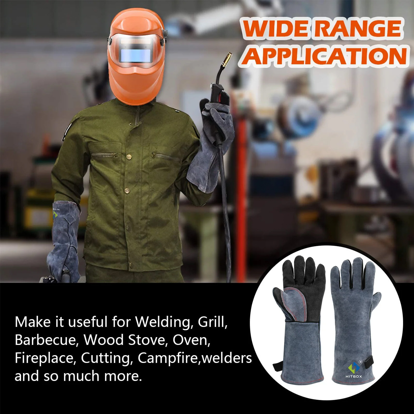 HITBOX Heat & Fire Resistant Gloves with Kevlar Stitching 16'' Leather Welding Gloves