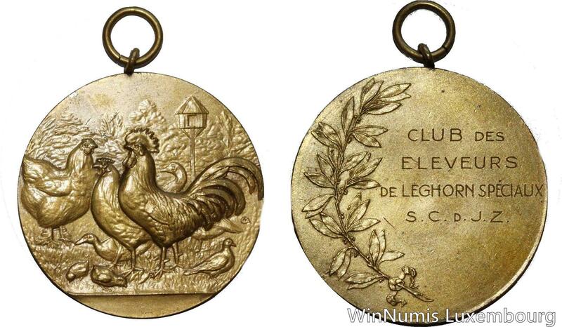 Médaille Belgique Coq Poule Club Eleveurs Leghorn 1950's SUP
