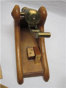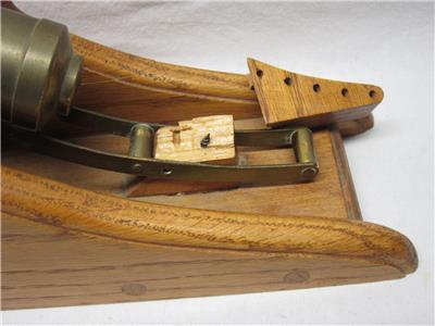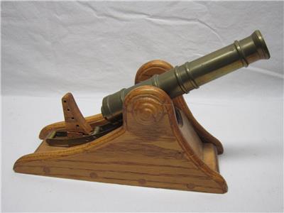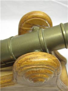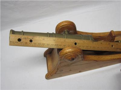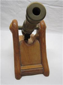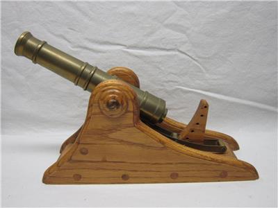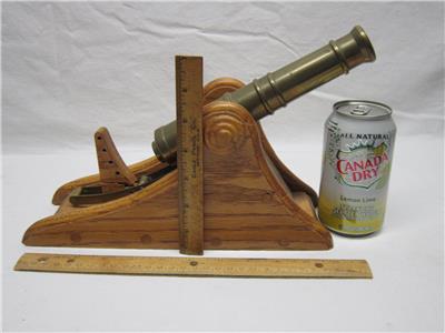 Great vintage brass cannon. The wood is broken in multiple places, looks like someone dropped it. About 5 lbs. Not drilled all the way through. Good for another project or repair. 1 of 2 listed. Sold as shown.