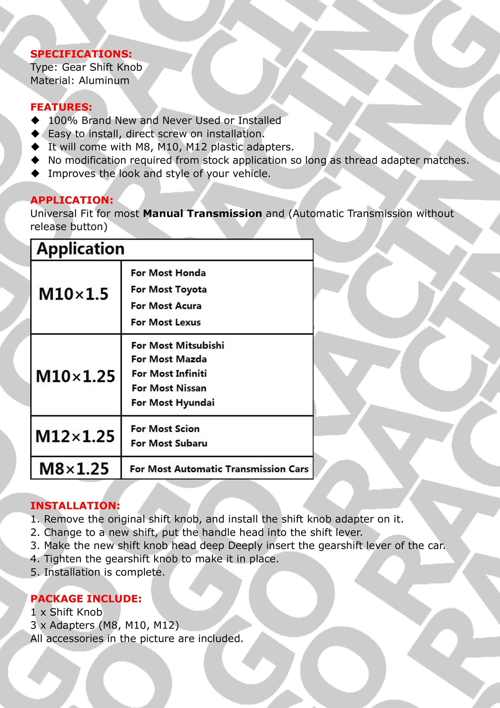 JDM Aluminum Car Gear Stick Shift Knob Manual MT Racing Shifter Lever Universal