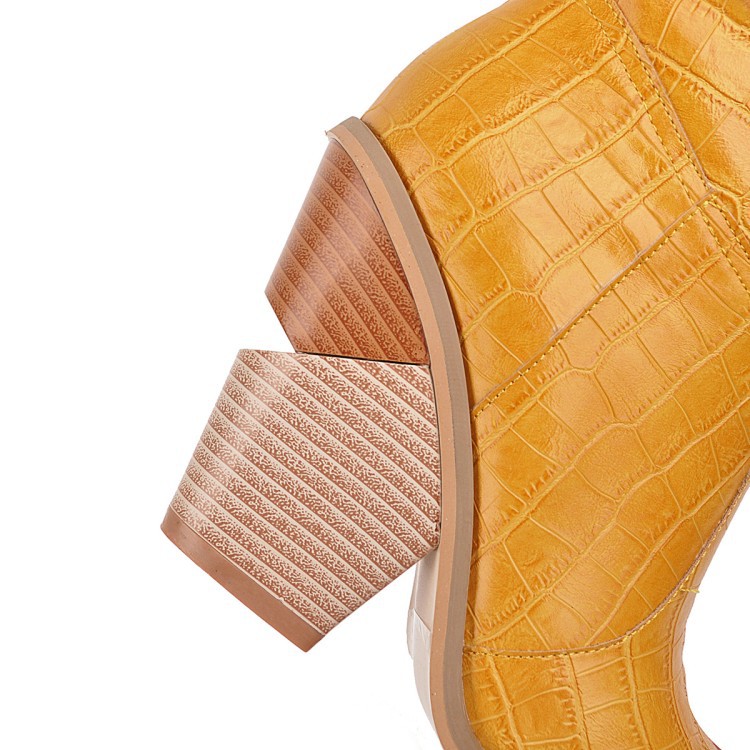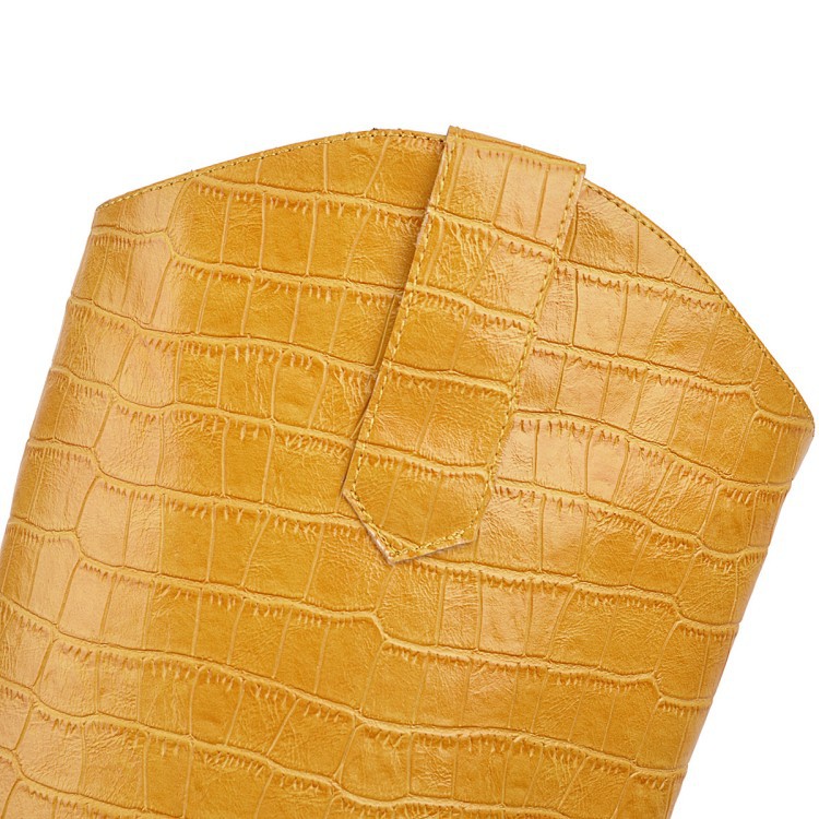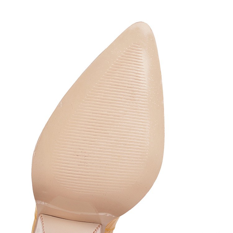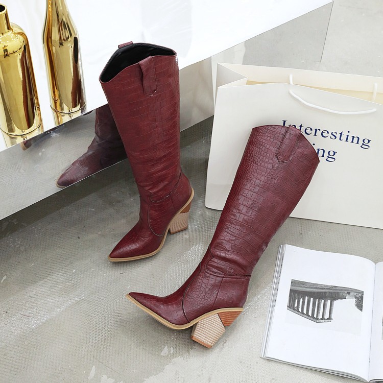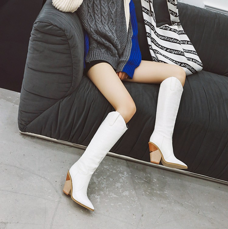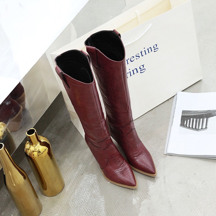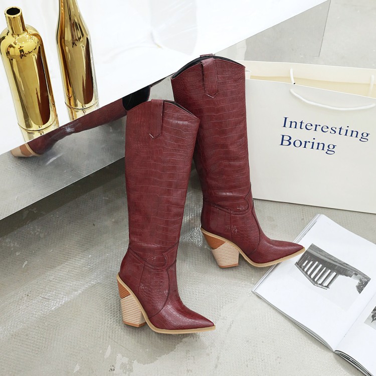 Womens Faux Leather Pointed Toe Block Heels Pull on Thin Knee High Boots US 5-13