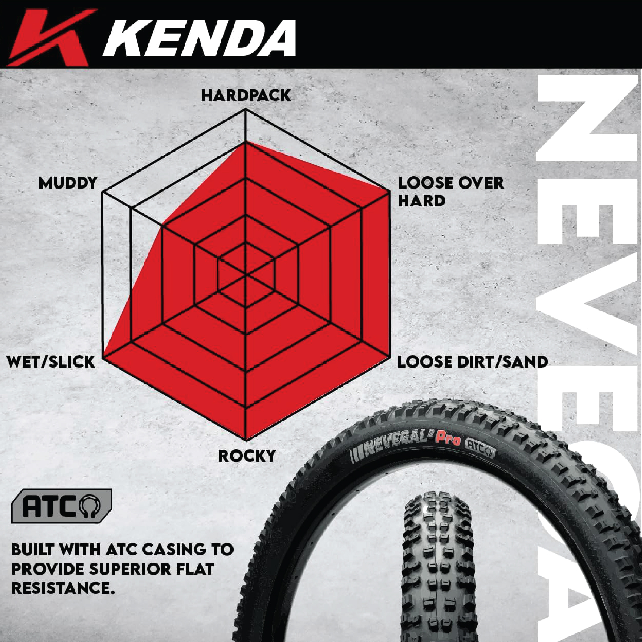 Kenda has been a trusted manufacturer of premium quality tires for nearly 60 years. Over a decade after its original release, the Nevegal 2 Pro ATC gets a complete makeover that leaves no aspect of the tire unchanged. The tread pattern was updated for reduced rolling resistance and now features the new EN-DTC rubber compound. The casing benefits from the latest in material technology featuring the Advanced Trail Casing optimized for enduro racing and trail riding. The ATC also uses a layer of SCT on the sidewalls and a K-Armor belt under the tread area. K-Armor allows for a tighter tread, and the use of less rubber, resulting in a lighter tire. Highly puncture resistant, this lightweight tire is made for speed as you’re hurdling down the trail. With the Nevegal 2 Pro ATC’s stronger braking power, you’re in control. Pack also includes the Kenda Airolution tube which offers four times the air retention and increased puncture protection while still weighing the same as a standard butyl rubber tube allowing riders to pump less and ride more.Lightweight K-Armor Material - The Nevegal 2 EMC E-Bike Trail Tire is crafted with advanced K-Armor material, which provides outstanding durability and puncture resistance while maintaining a lightweight design. This allows for a smoother and more efficient ride on various terrains.