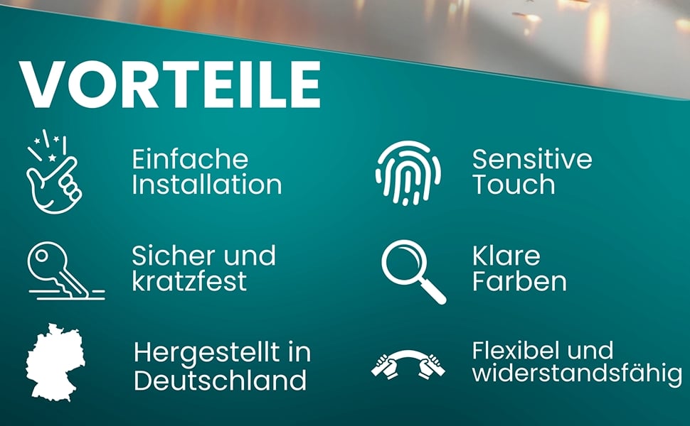 Hergestellt aus strapazierfähigem und energieabsorbierendem TPU, schützt die Folie die Glasfläche vor äußeren Einflüssen. Oberflächliche Kratzer schließen sich automatisch.