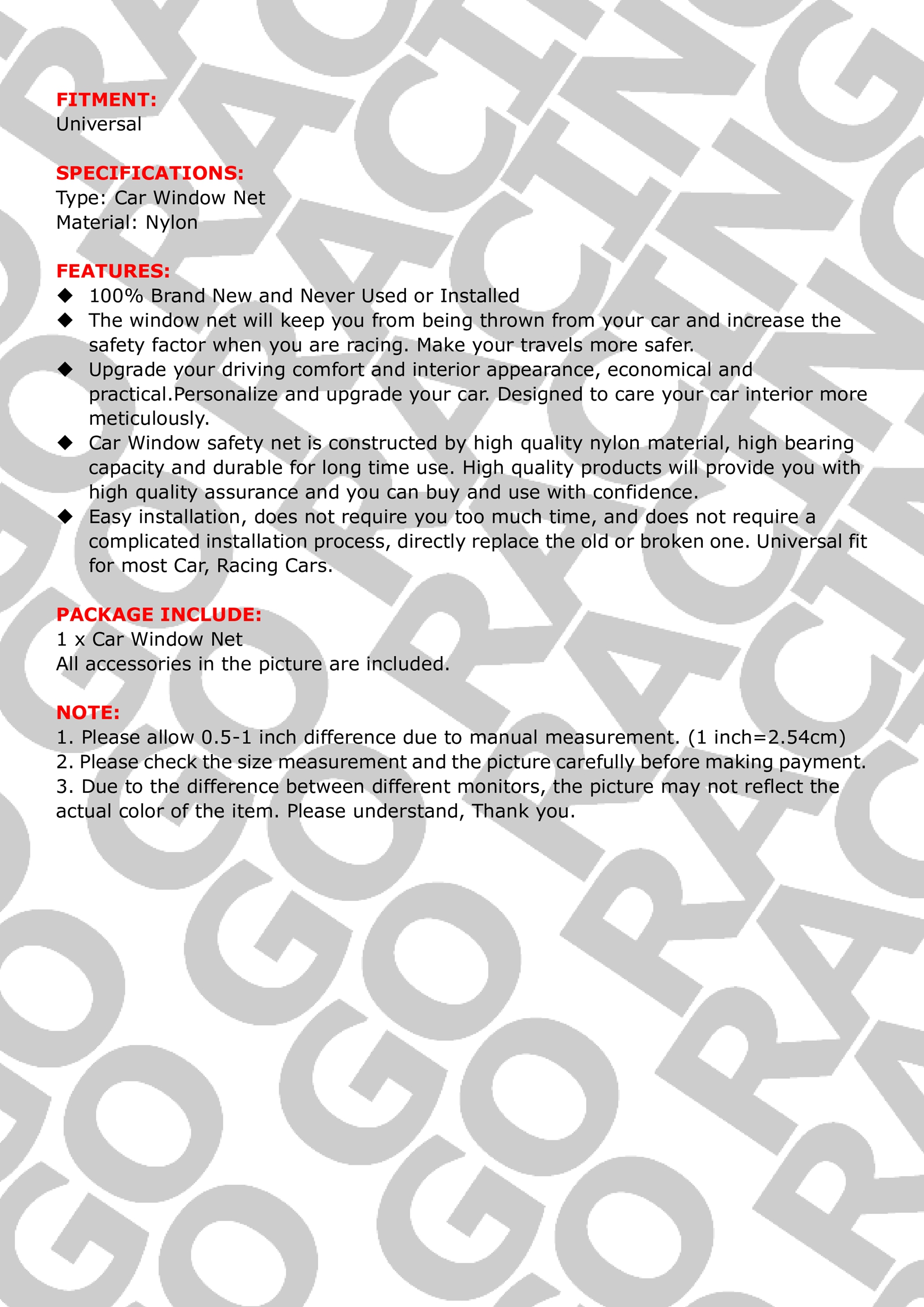 Heavy Duty Racing Window Net For Car Window Safety Equipment Nylon Webbing