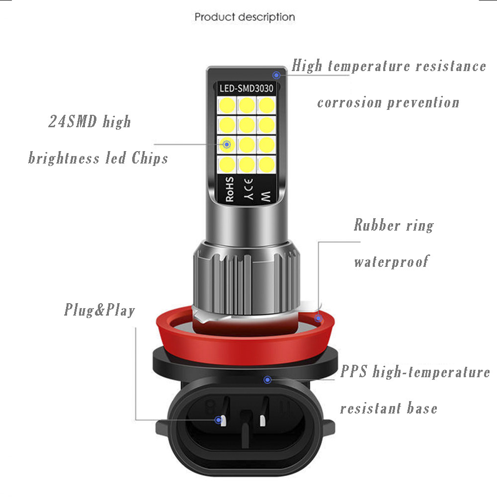 - 6000K per pair, 3030 customized LED chips, 200% brighter as original halogen bulbs. (Don't be fooled by high lumen ratings, LED bulb was designed with correct optical focus for increased output, functional beam, no added glare.)